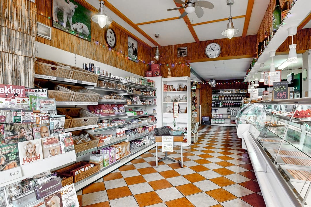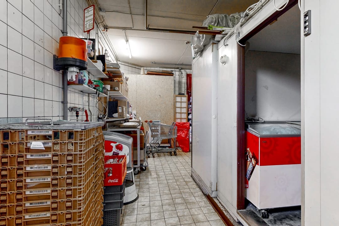 - Ruime winkelruimte met voorraadruimte en koelcellen;