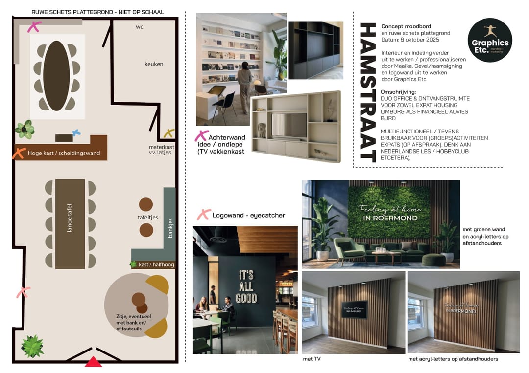 De ruimte zelf is uitermate geschikt voor verschillende toepassingen. Zo kan het bijvoorbeeld functioneren als duo office of ontvangstruimte, financieel advies of een multifunctioneel bureau. Ook is de ruimte bruikbaar voor (groeps)activiteiten, workshops, Nederlandse les of hobbyclubs op afspraak. Dankzij deze flexibiliteit biedt de ruimte volop mogelijkheden om te combineren werken, ontmoeten en leren.