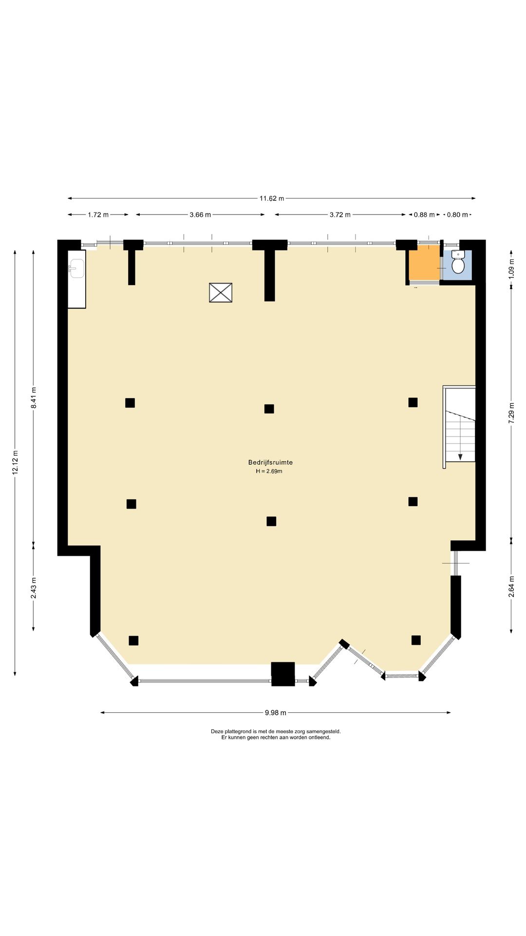 Deze commerciële bedrijfsruimte wordt in de huidige staat opgeleverd. Er wordt casco verhuurd. De in het gehuurde aanwezige voorzieningen die niet tot het casco behoren worden door verhuurder om niet ter beschikking gesteld.