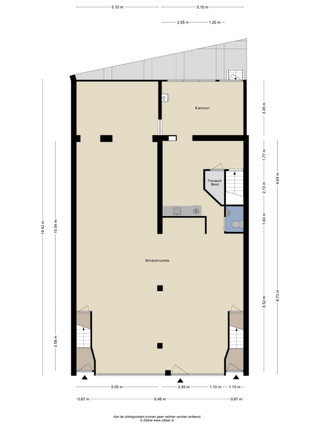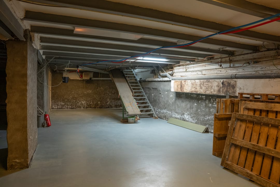 Achter in de winkel bevindt zich een vaste trap naar de kelder, deze kelder beschikt geheel over stahoogte en is geschikt als opslagruimte. Hiernaast beschikt de kelder over een transportband voor transporteren van grote en/of zware goederen.