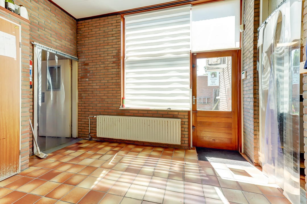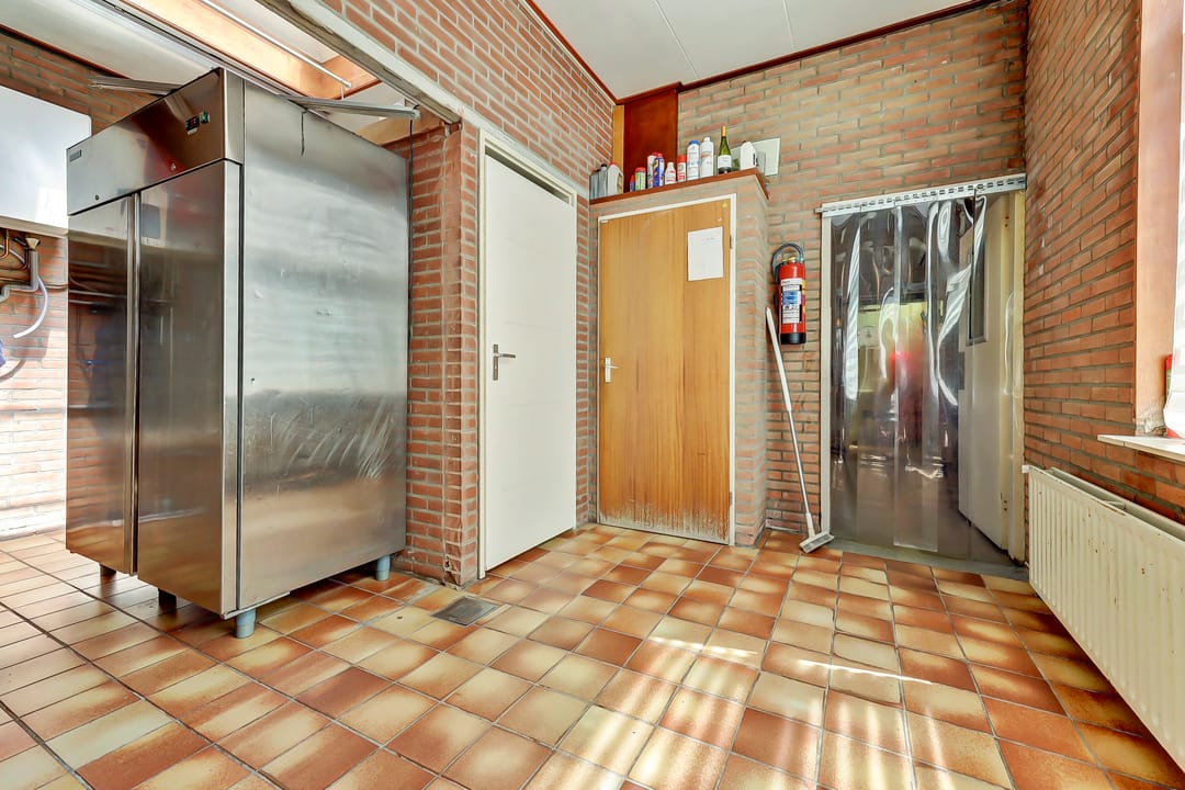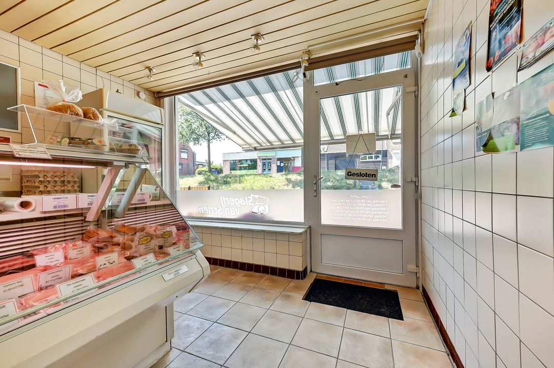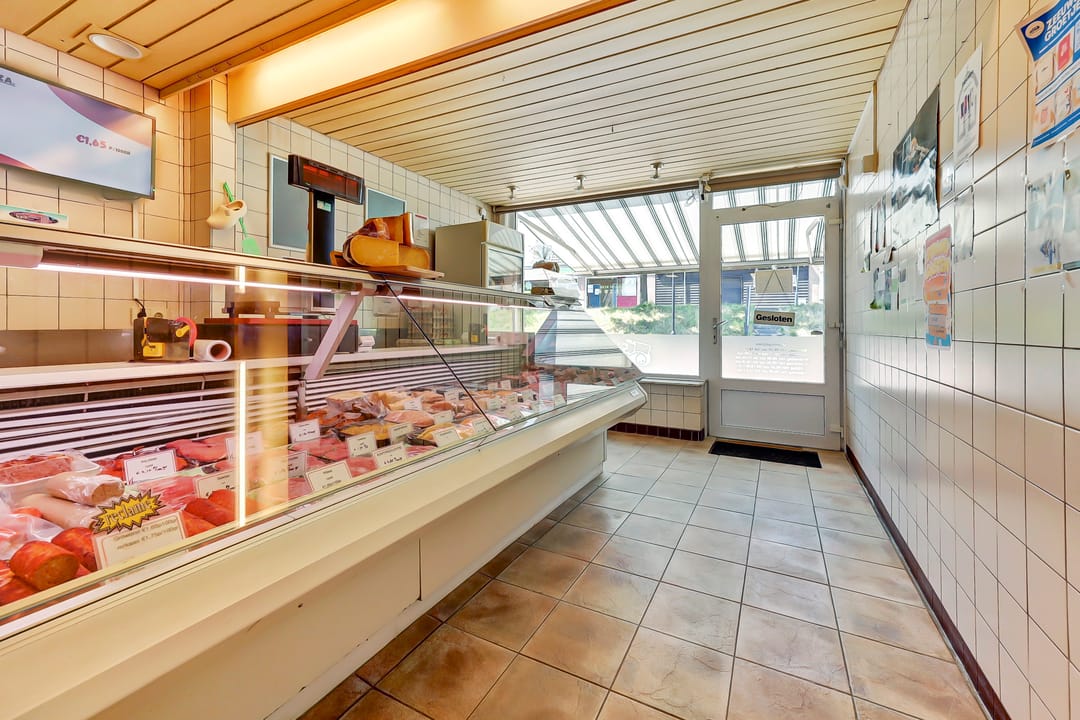De woning heeft aan de voorzijde een winkelpand. Waar zich momenteel een nette en functioneel ingerichte winkelruimte bevindt. Deze ruimte is voorzien van een toonbank, schappen, koelingen en een werkruimte perfect voor detailhandel, een traiteur of andere ambachtelijke activiteiten. De winkel is keurig afgewerkt met tegelvloeren en een plafond met inbouwverlichting.