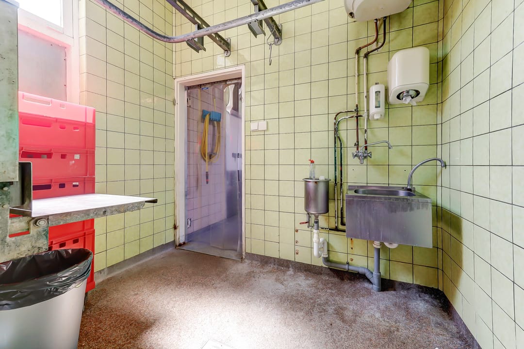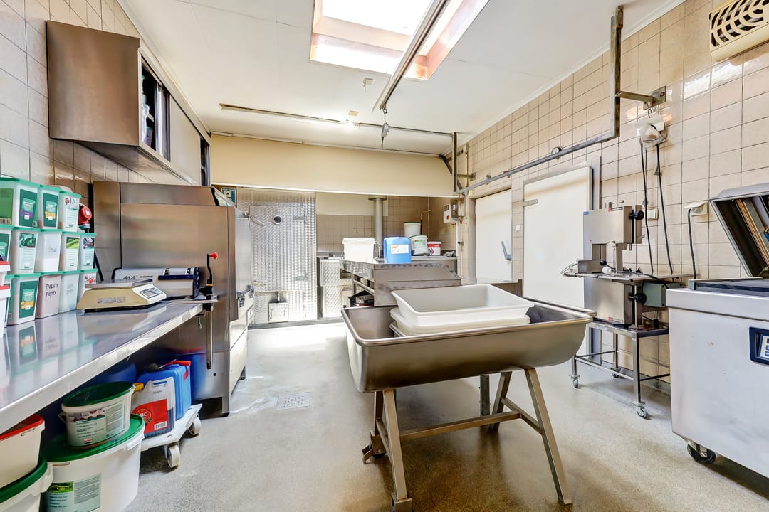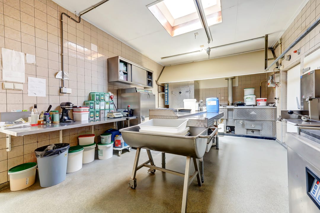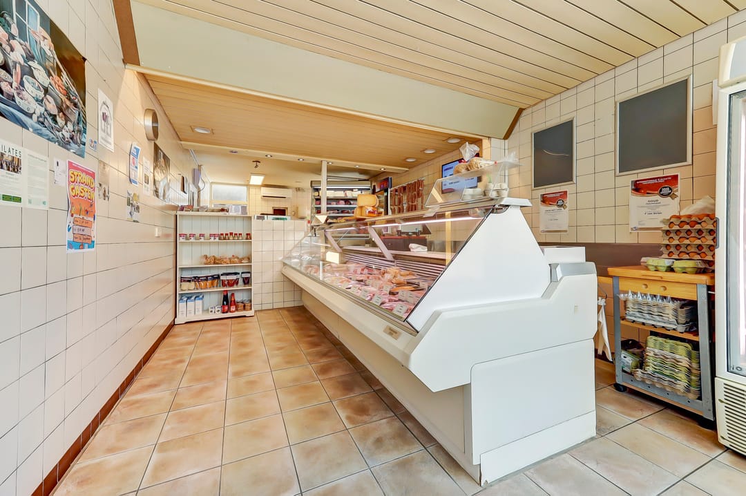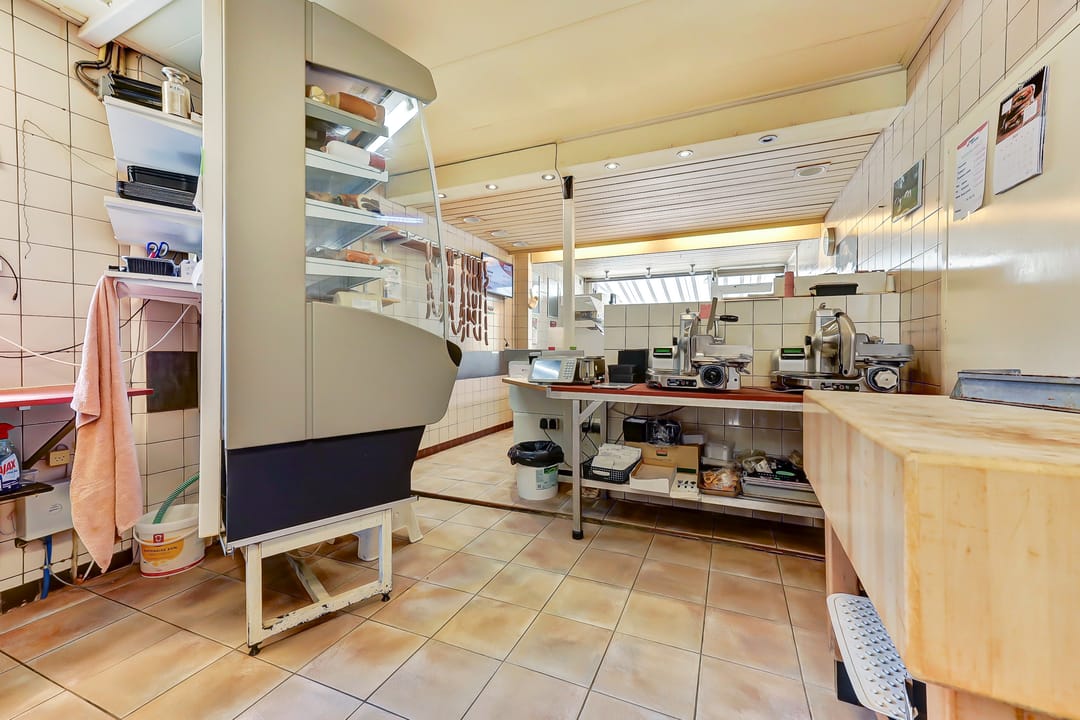 * Winkelruimte met balie, koelvitrine en werkvoorzieningen