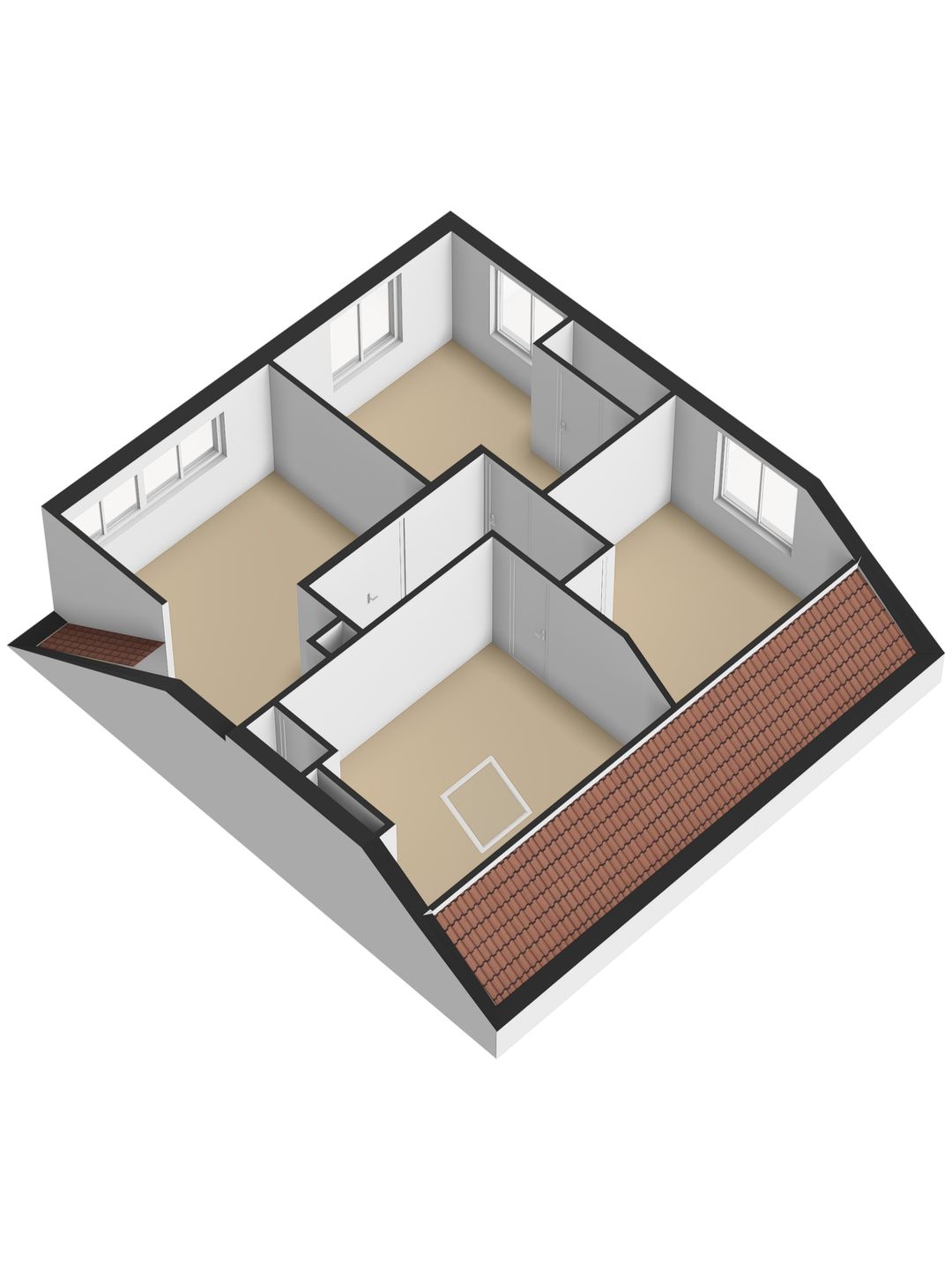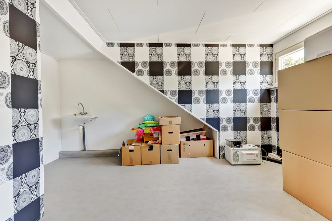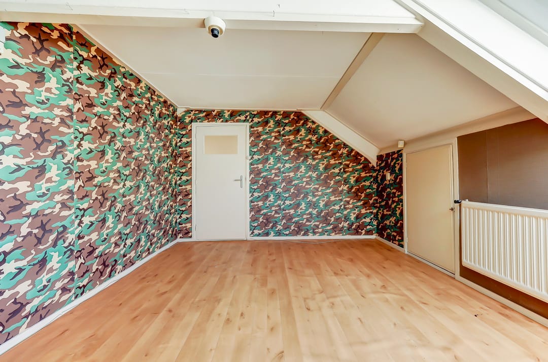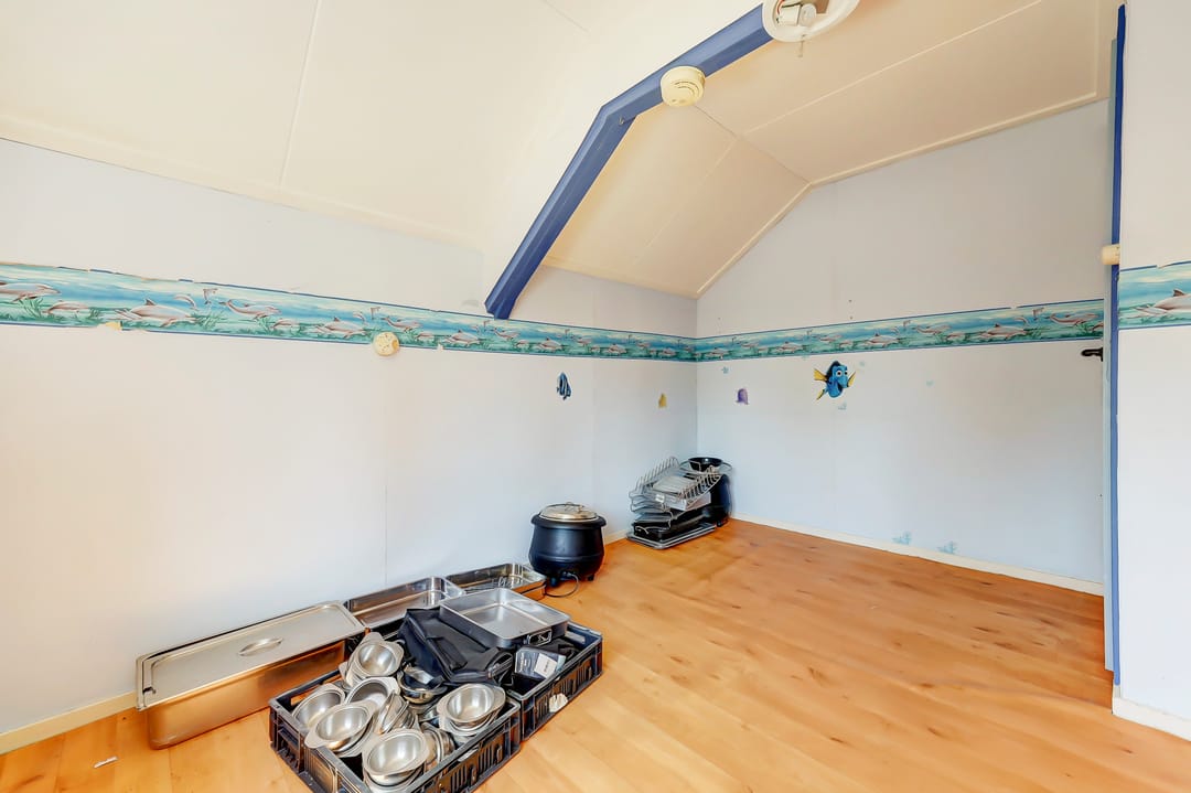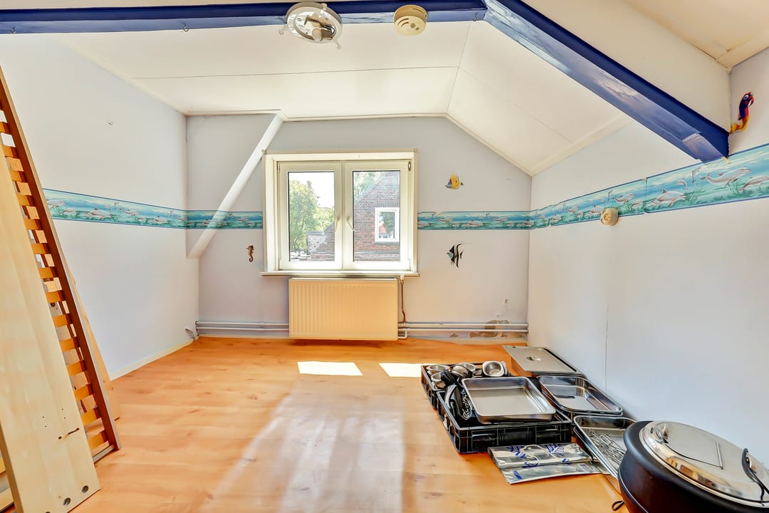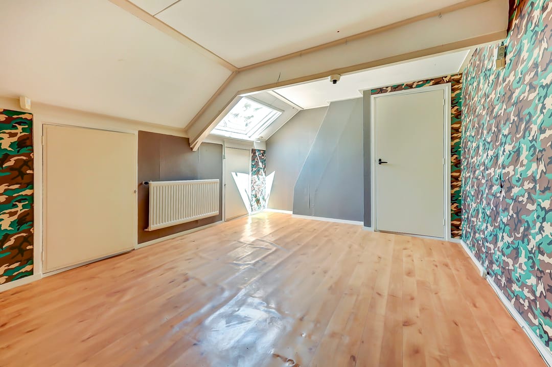 Dankzij de ruime indeling biedt deze verdieping mogelijkheden voor meerdere slaapkamers, werkruimtes of hobbykamers. Er is bovendien nog bergruimte in de aanwezige kasten onder het schuine dak.