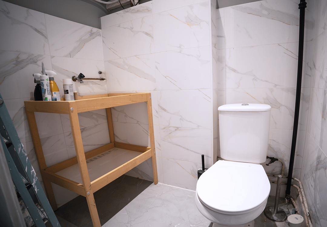 Aan de achterzijde tref je een praktische keuken. Er is een eenvoudig pantryblok, zodat je altijd even kunt pauzeren met een bak koffie of vertrouwd broodje tussen het harde werken door. Uiteraard ontbreekt ook het toilet niet, slim weggewerkt achter in het pand.