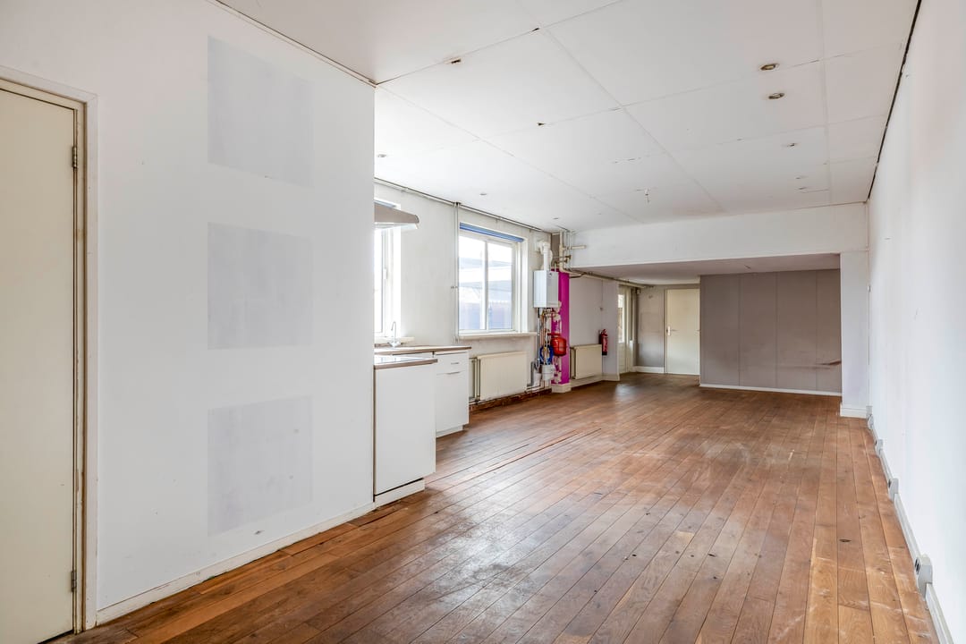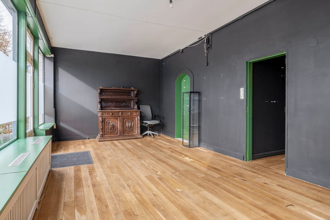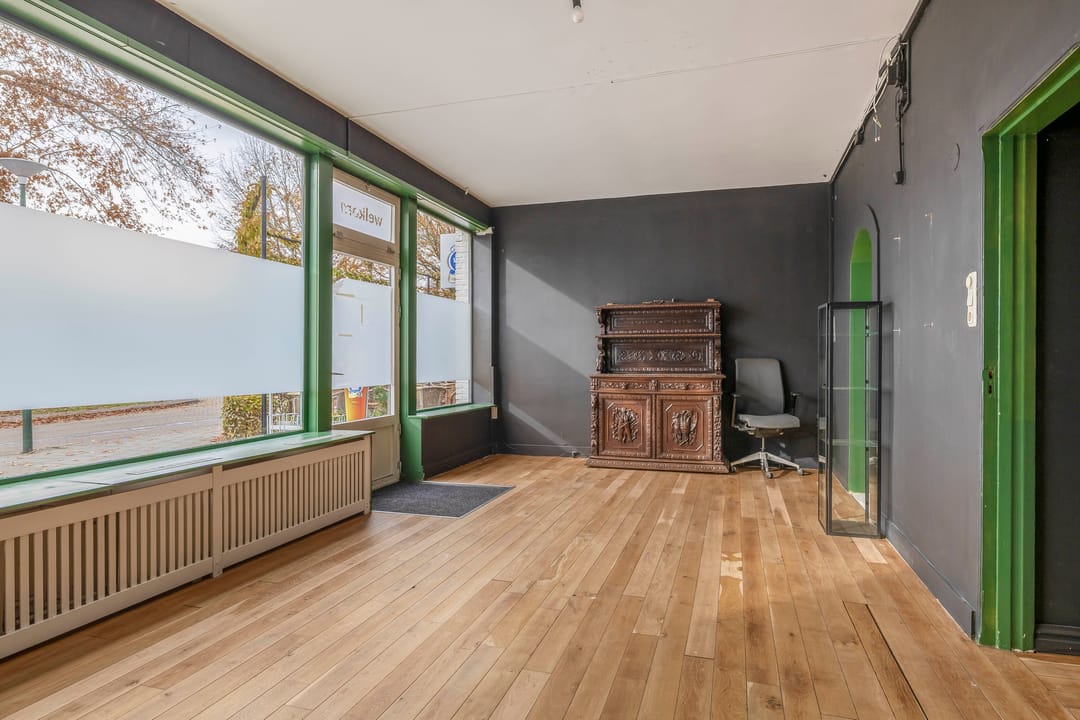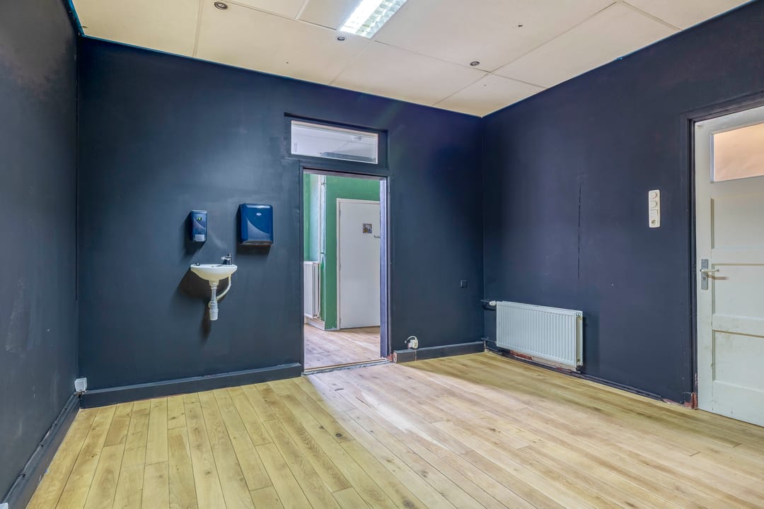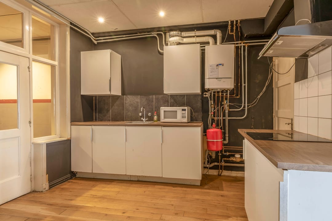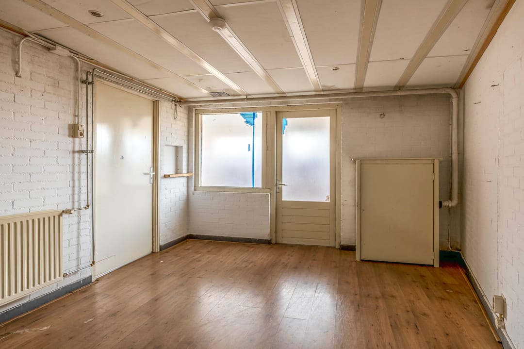 Wanneer u verder doorgaat in het pand heeft u de beschikking over diverse ruimtes, welke gebruikt kunnen worden als magazijn/opslagruimte of werkplaats. Daarnaast bevinden zich op de begane grond ook 2 toiletten en een douche met wastafel. In de grote ruimte aan de achterzijde is ook een pantry aanwezig met spoelbak, kookplaat en afzuigkap. Door de grote ramen valt hier veel licht binnen. De begane grond is grotendeels voorzien van een houtenvloer.