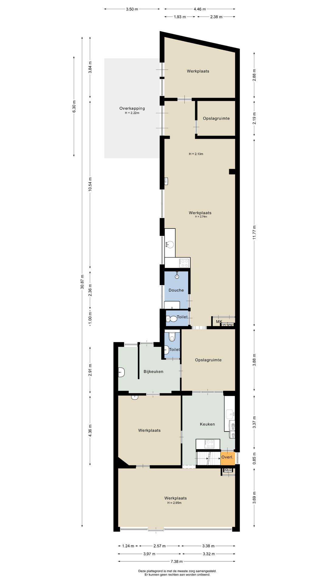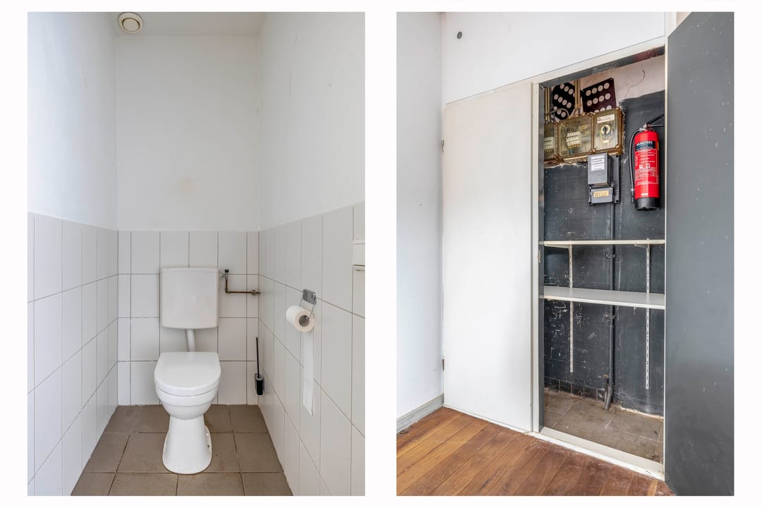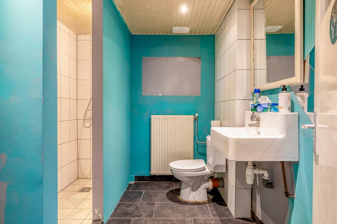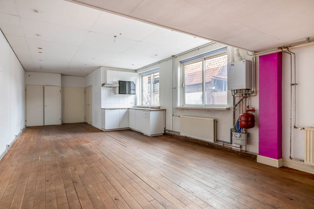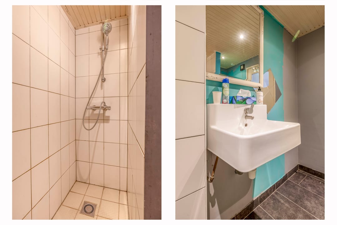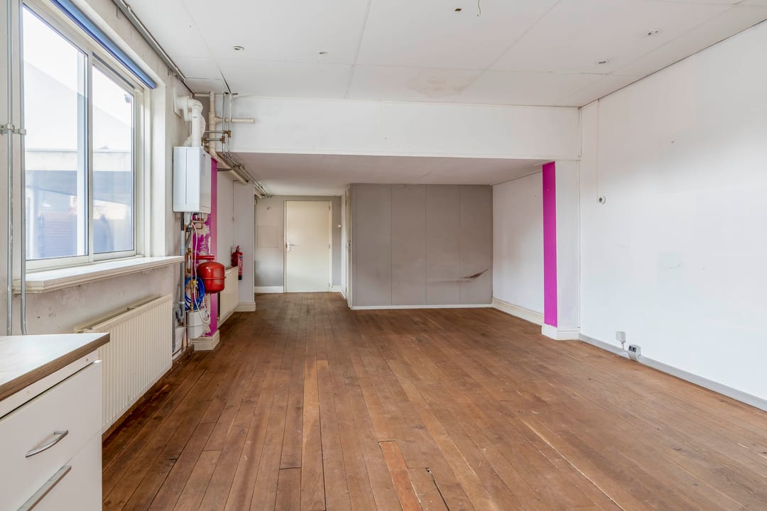 Wanneer u verder doorgaat in het pand heeft u de beschikking over diverse ruimtes, welke gebruikt kunnen worden als magazijn/opslagruimte of werkplaats. Daarnaast bevinden zich op de begane grond ook 2 toiletten en een douche met wastafel. In de grote ruimte aan de achterzijde is ook een pantry aanwezig met spoelbak, kookplaat en afzuigkap. Door de grote ramen valt hier veel licht binnen. De begane grond is grotendeels voorzien van een houtenvloer.