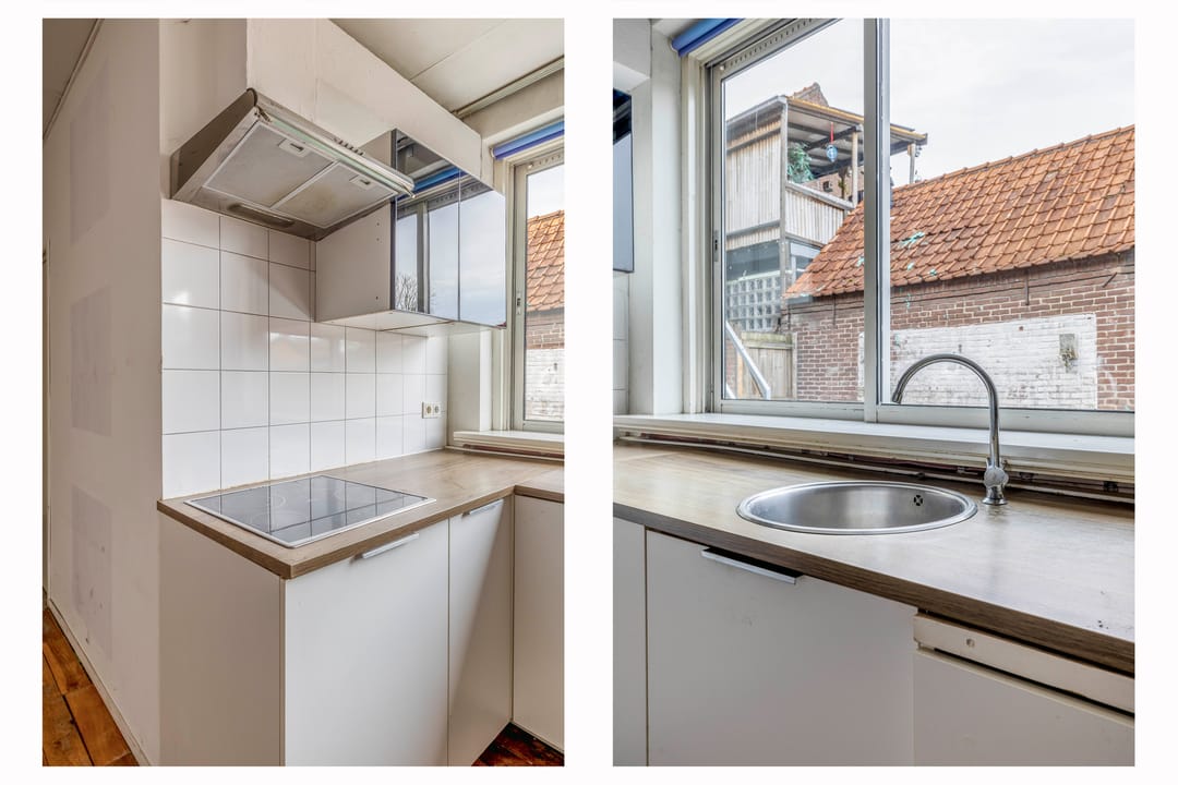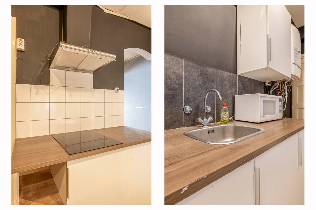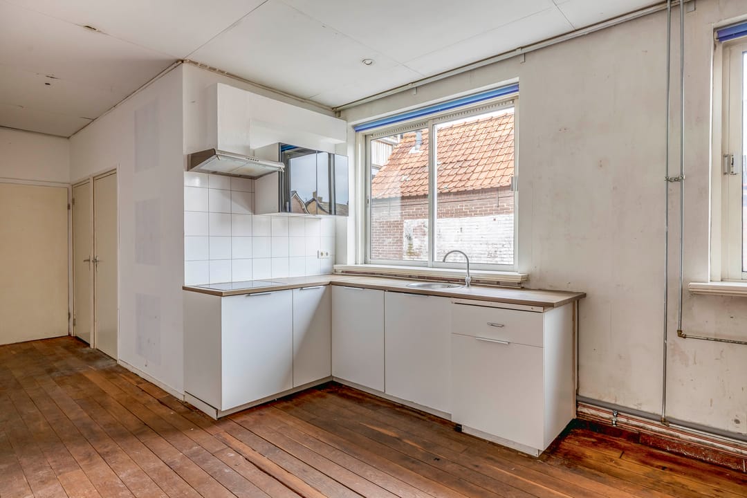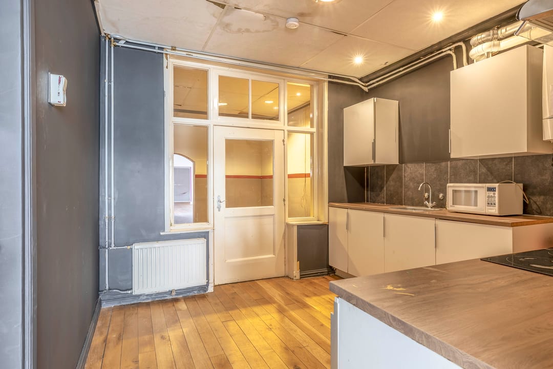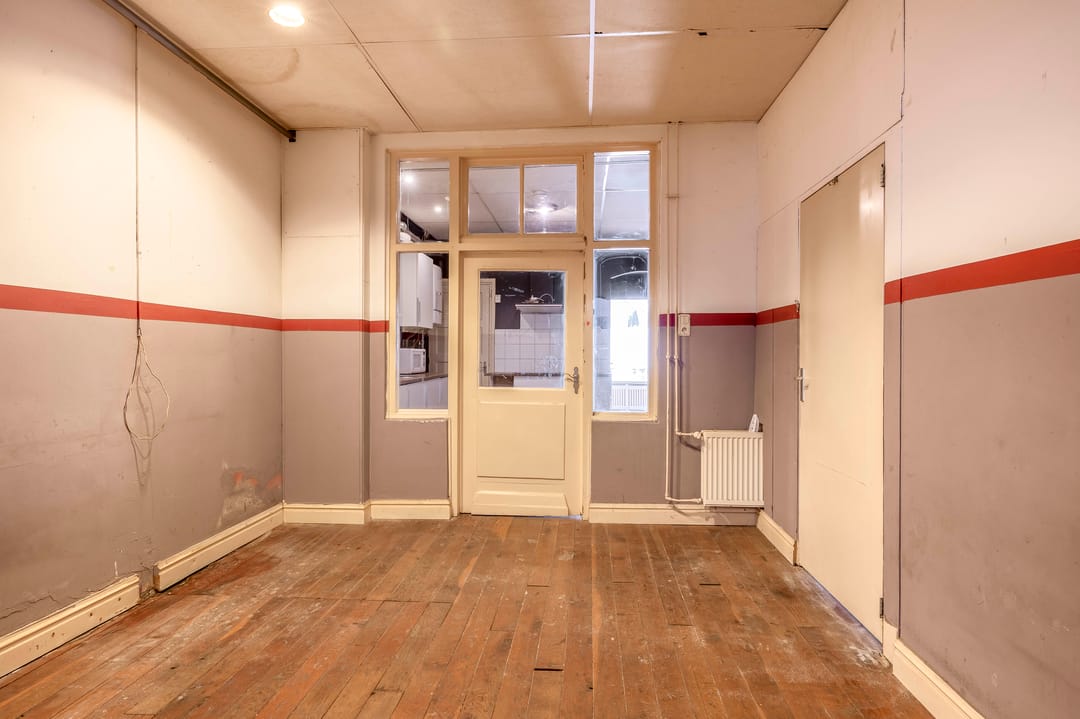 De begane grond van dit pand met potentie is op dit moment ingedeeld in verschillende ruimtes. De eerste ruimte kan prachtig dienst doen als showroom, kapsalon of andere winkelruimte invulling. Vanuit deze ruimte heeft u toegang tot de keuken en een tweede ruimte. De tweede ruimte is eenvoudig te verbinden met de eerste ruimte voor een grotere winkelruimte. De keuken beschikt over een kookplaat, afzuigkap en spoelbak tevens hangt hier een Cv-installatie.