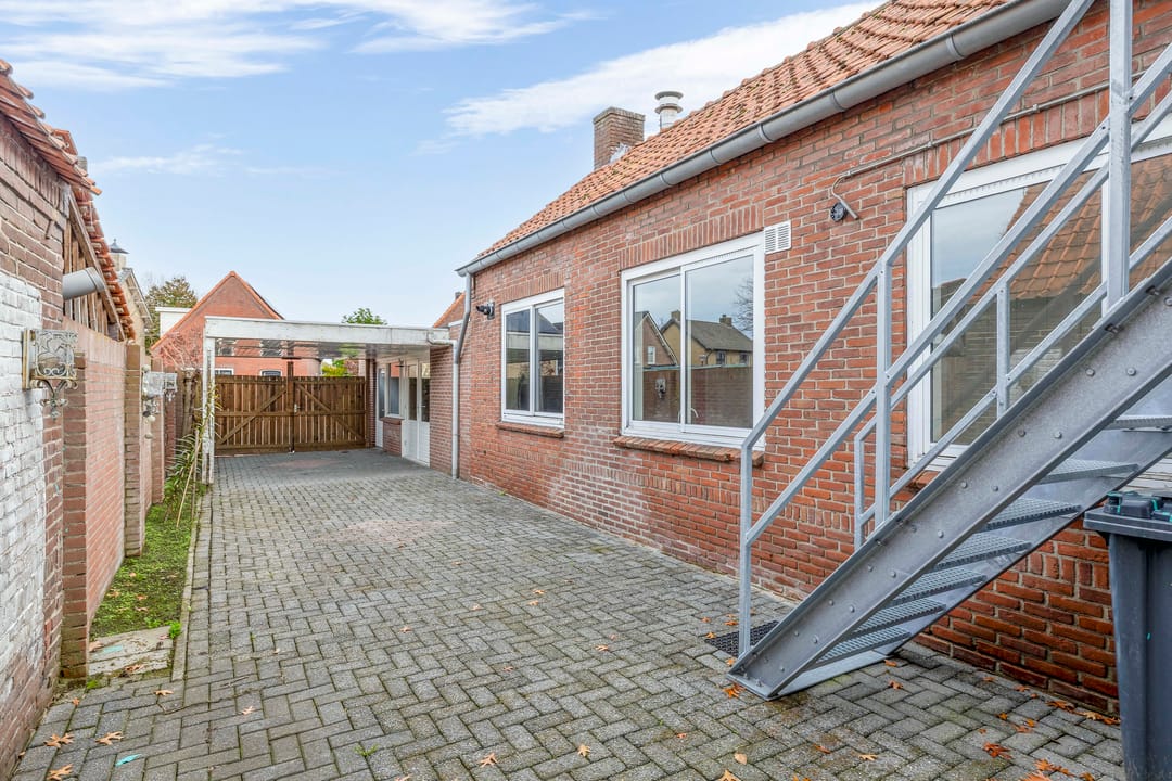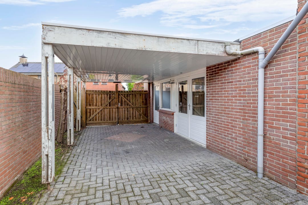 Wanneer u voor het pand staat bevindt zich aan de linkerzijde de achterom naar het volledig verharde buitenterras van circa 70 m². Vanuit de Dahliastraat heeft u via een poort aan de achterzijde toegang tot het buitenterrein, zo kunt u eventueel een auto of aanhanger droog stallen onder de carport.