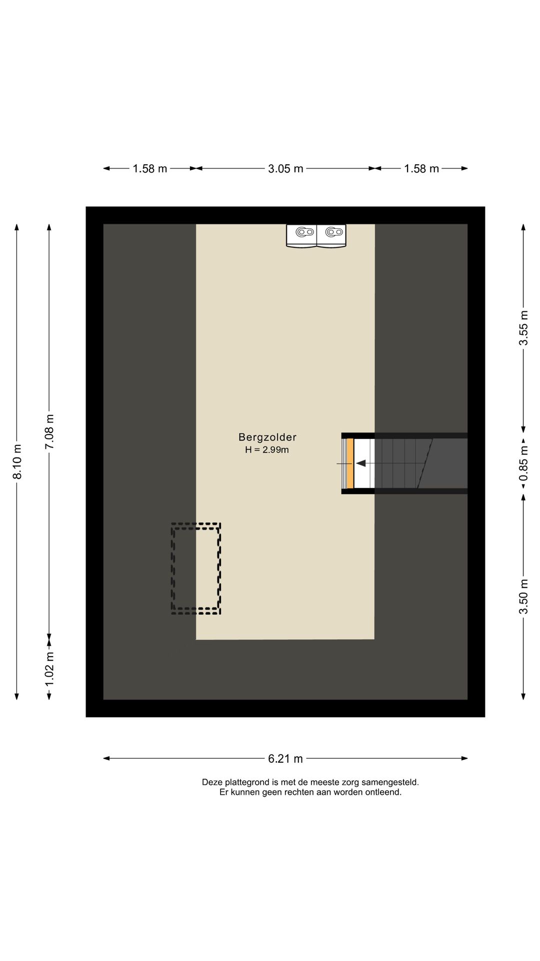 Deze verdieping kan gebruikt worden voor opslag van uw spullen, verder is de tweede verdieping voorzien van een dakraam en bevindt zich hier de CV installatie.
