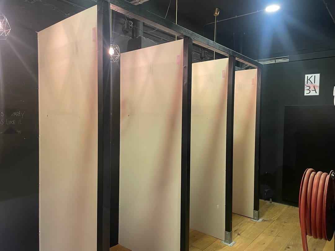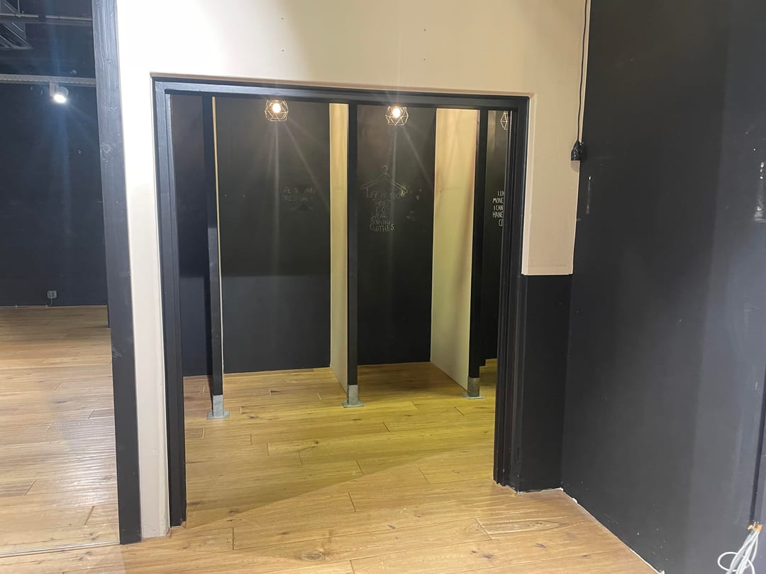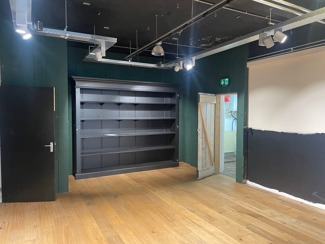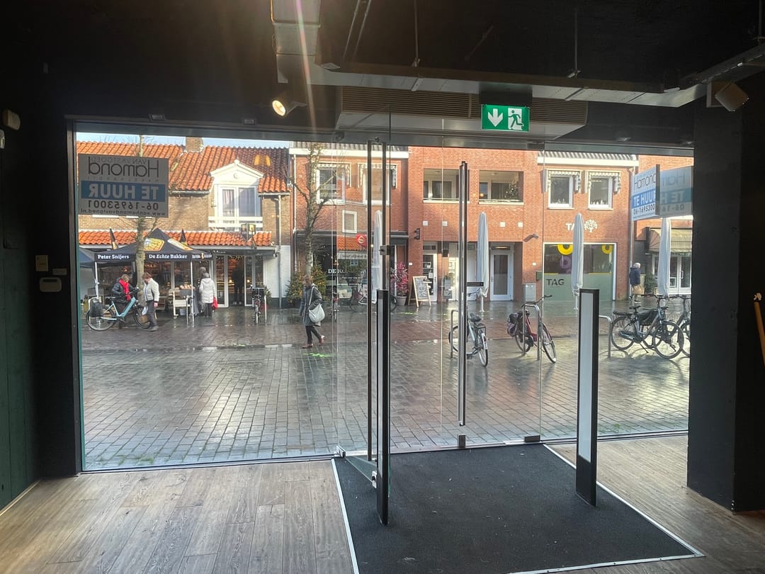 De winkel heeft een achteruitgang die uitkomt op het achtergelegen parkeerterrein.