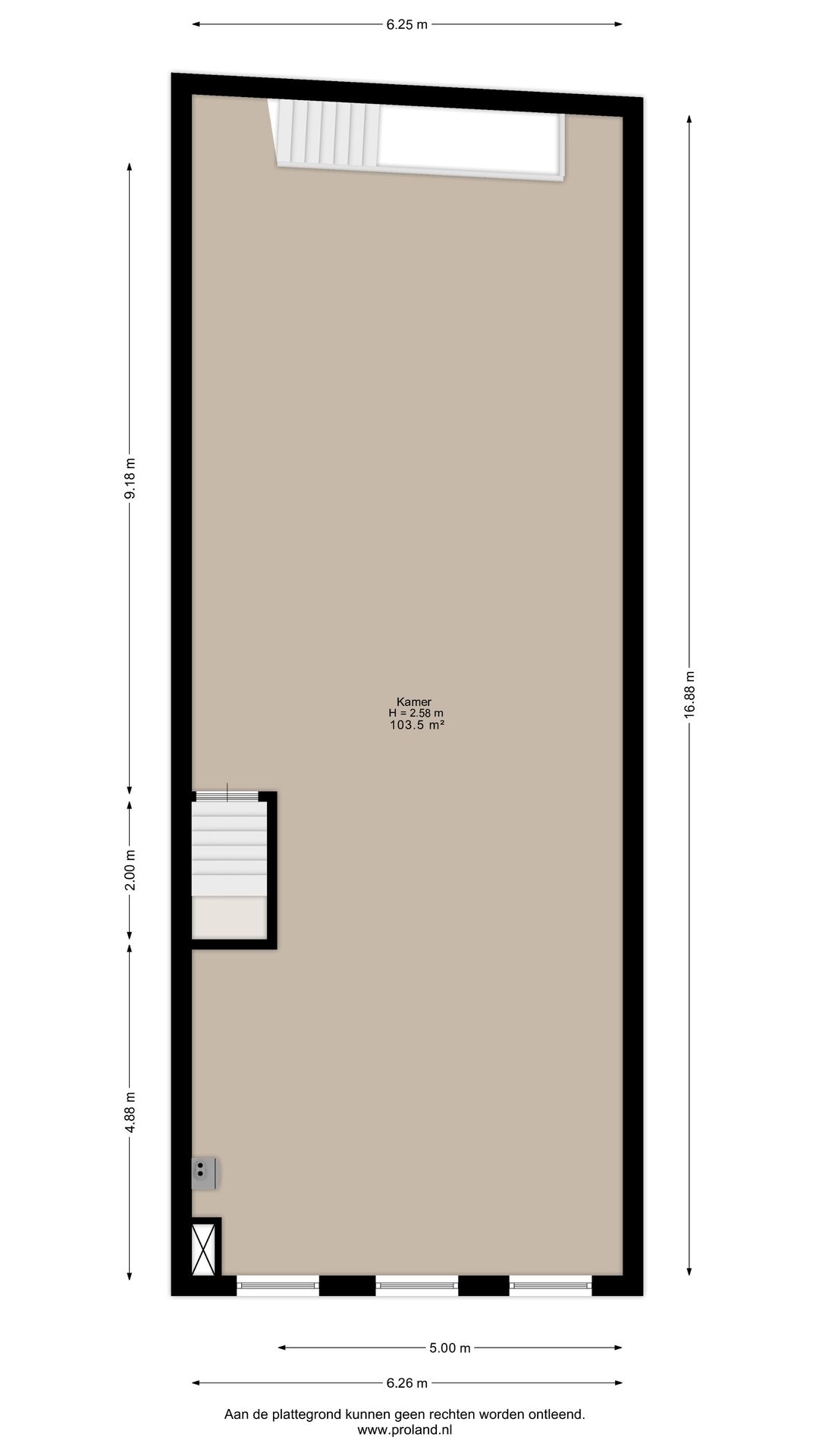 Grote open casco ruimte van circa 103,5 m², geschikt voor het realiseren van een ruim appartement of combinatie van wonen en werken. Trapopgang naar de tweede verdieping.
