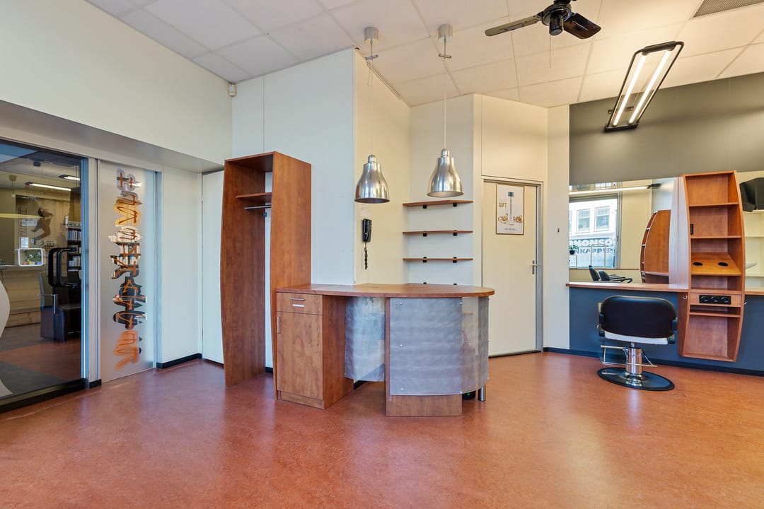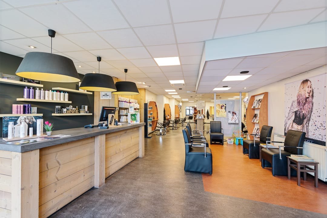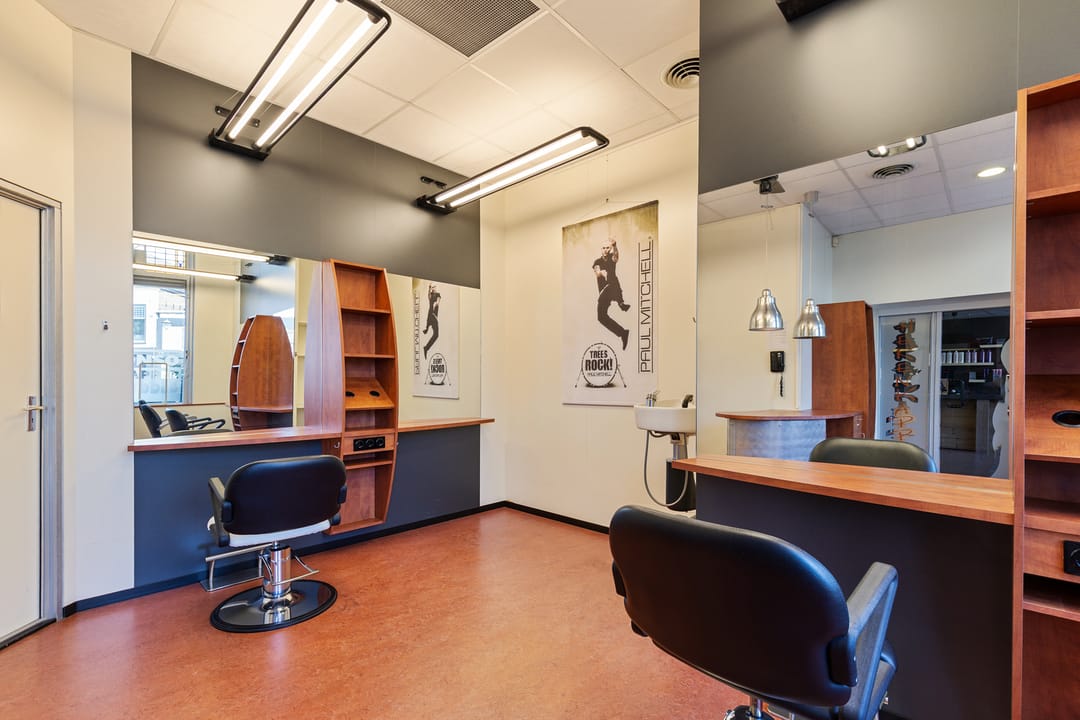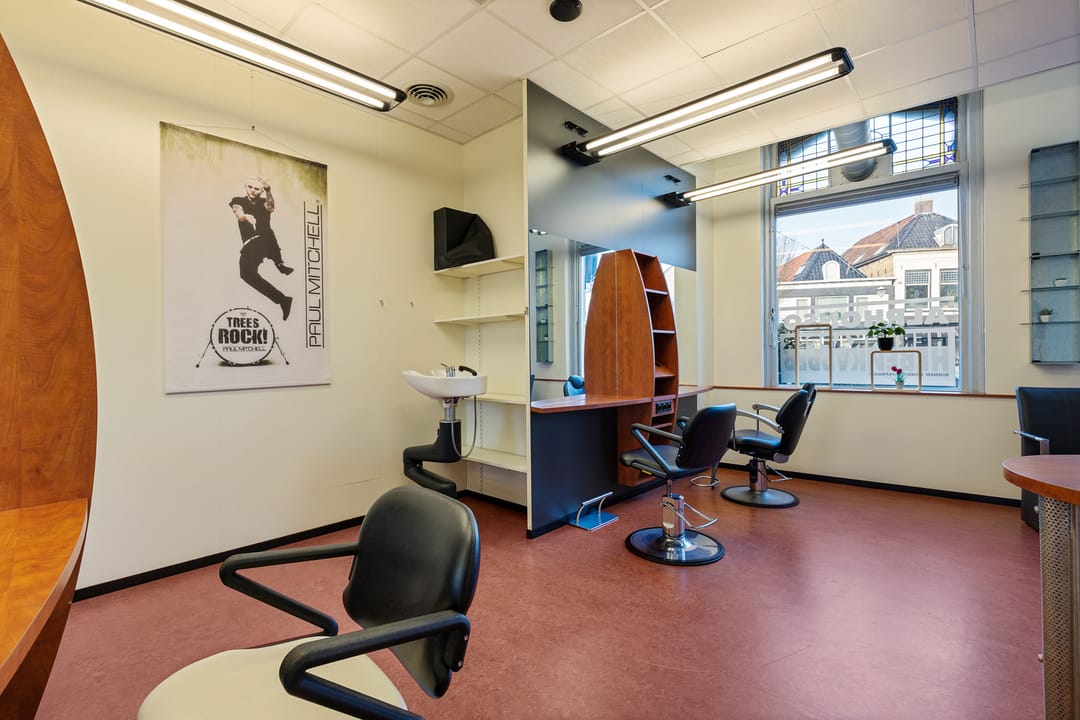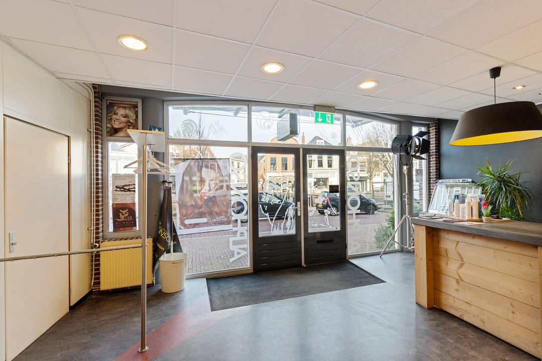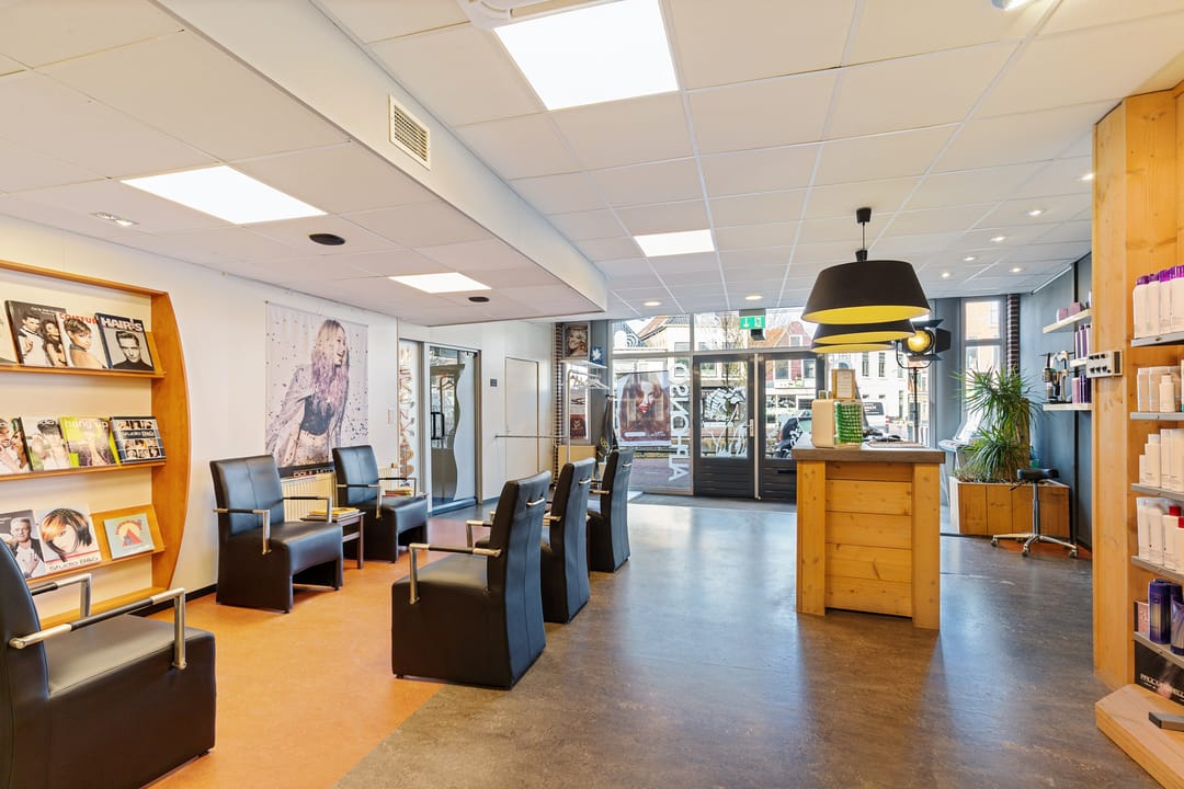 De bedrijfsruimte verkeert in normaal onderhouden staat en is ingericht voor gebruik als kapsalon, met een grote open werkruimte aan de voorzijde en aanvullende ruimtes aan de achterzijde. Dankzij de royale oppervlakte en de brede gevel is het object geschikt voor diverse commerciële of dienstverlenende activiteiten.