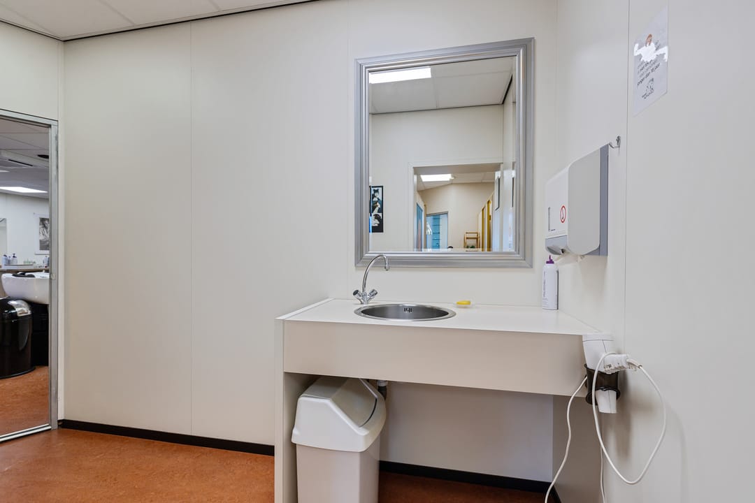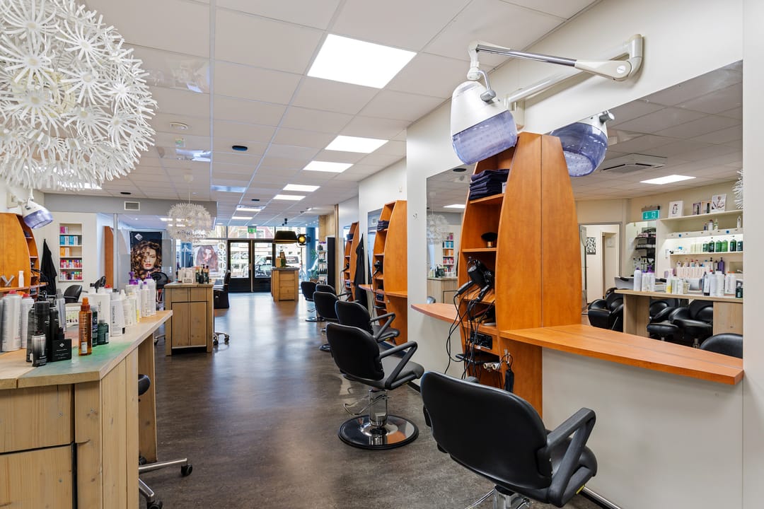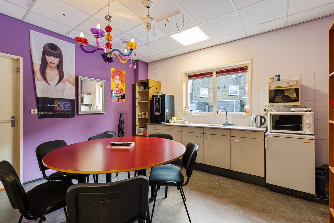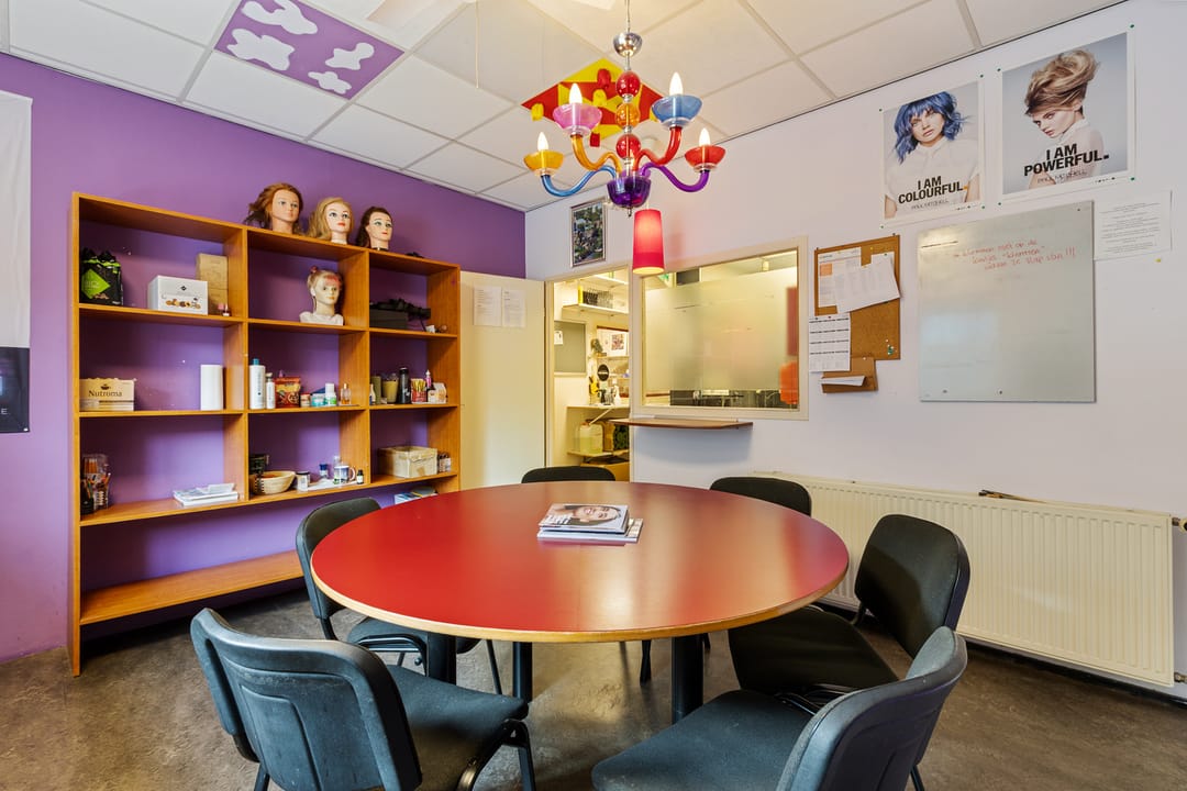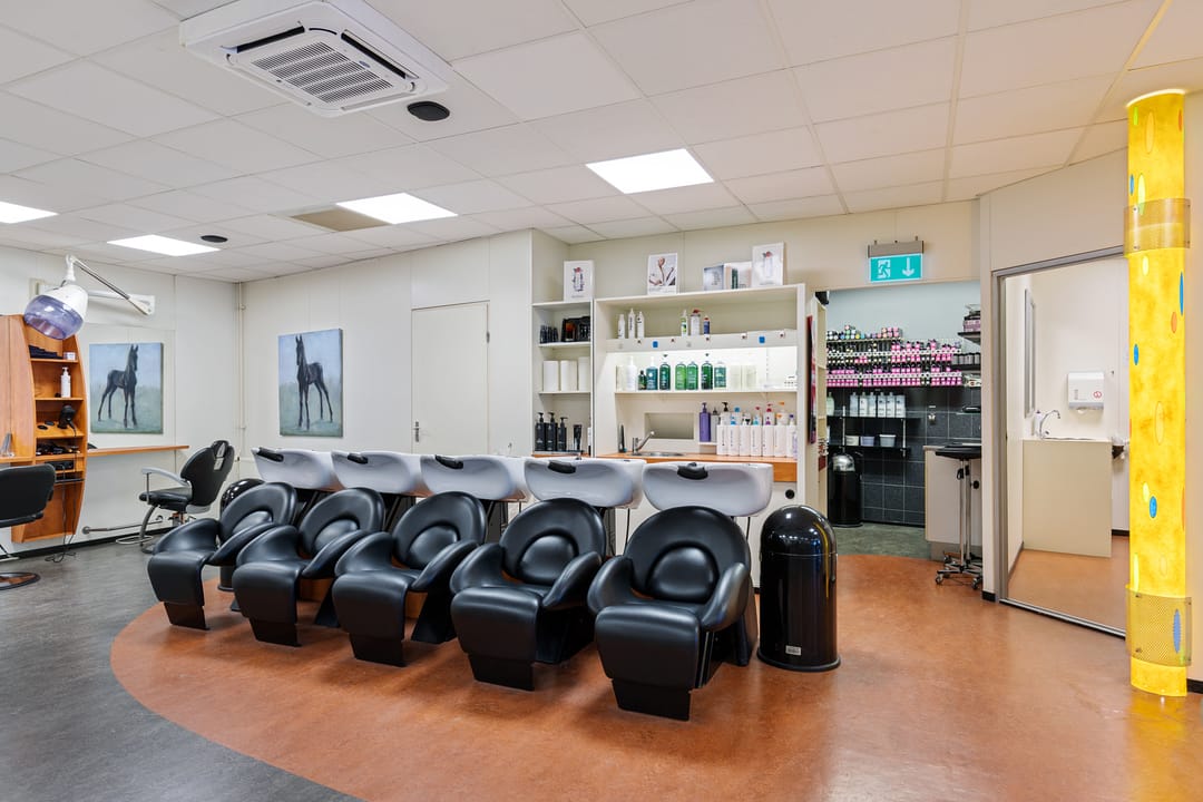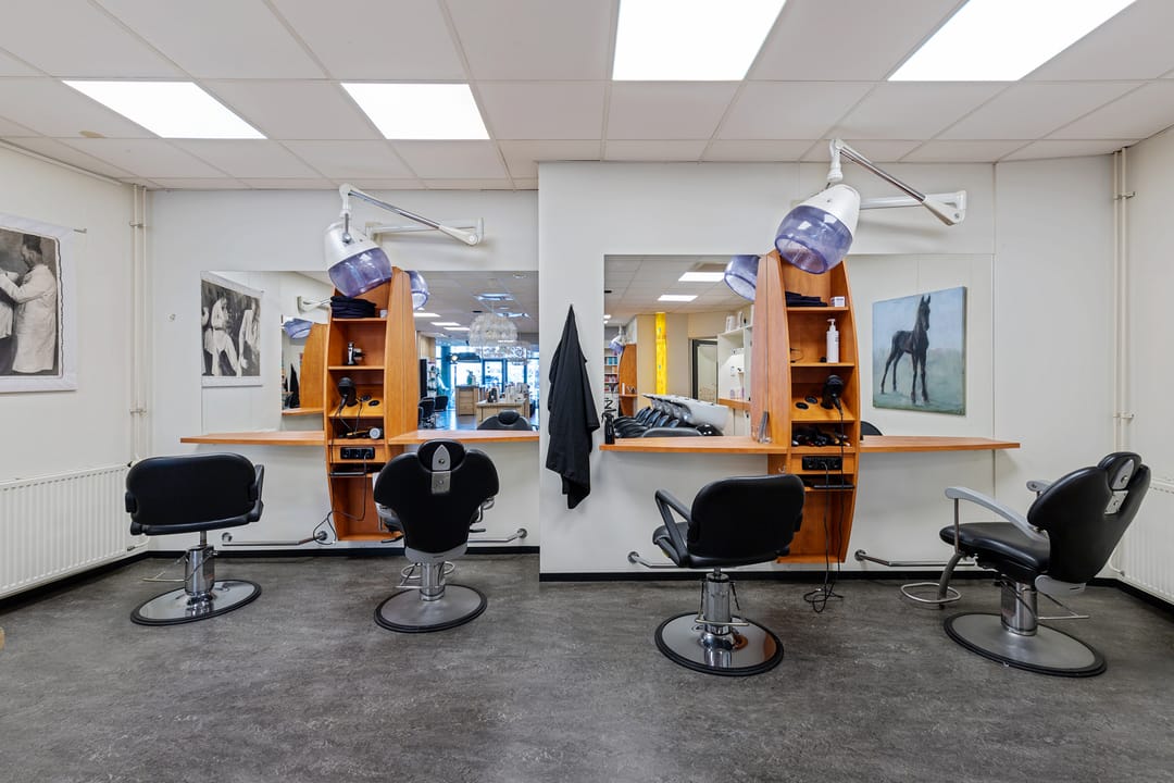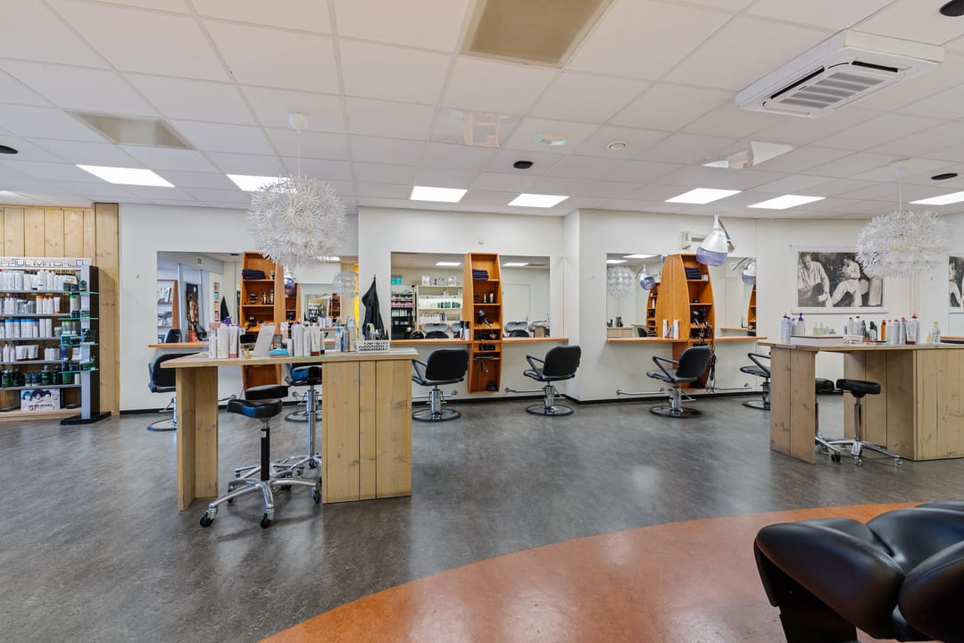 De bedrijfsruimte verkeert in normaal onderhouden staat en is ingericht voor gebruik als kapsalon, met een grote open werkruimte aan de voorzijde en aanvullende ruimtes aan de achterzijde. Dankzij de royale oppervlakte en de brede gevel is het object geschikt voor diverse commerciële of dienstverlenende activiteiten.