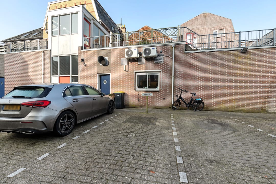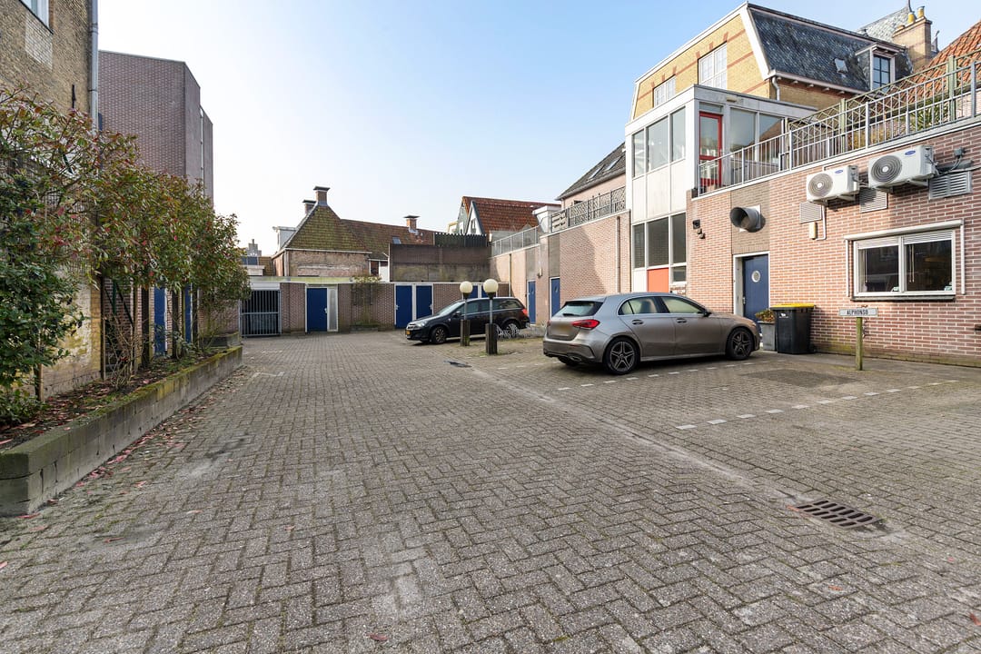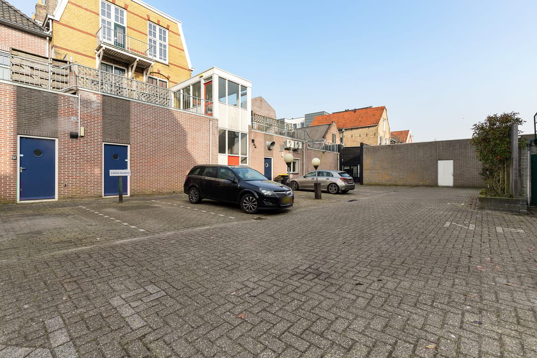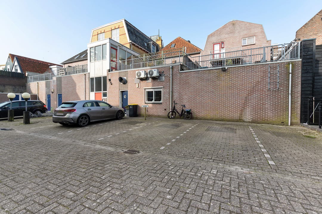 Aan de achterzijde bevindt zich een eigen parkeerplaats, wat in de binnenstad van Sneek een praktisch voordeel is voor gebruiker of personeel.