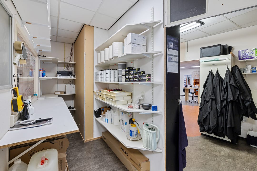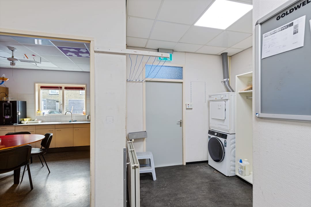 Entree aan de straatzijde met toegang tot een ruime multifunctionele bedrijfsruimte (voormalige salonruimte). Vanuit deze open ruimte toegang tot diverse aanvullende ruimtes, waaronder een kantoorruimte, meerdere kamers/werkruimtes, pantry/kantine, bijkeuken, berging, hal, toilet en badkamer. Aan de achterzijde bevindt zich een eigen parkeerplaats.