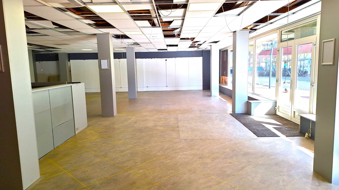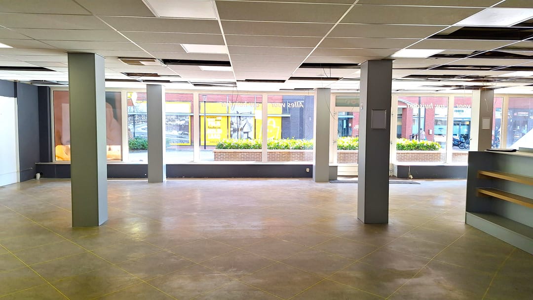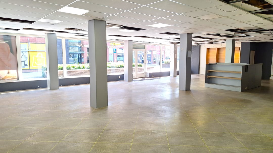 Royale winkelruimte met grote kelder, gesitueerd op een hoeklocatie aan een prachtige winkelstraat met een grote diversiteit aan bedrijvigheid en parkeren direct voor de deur.