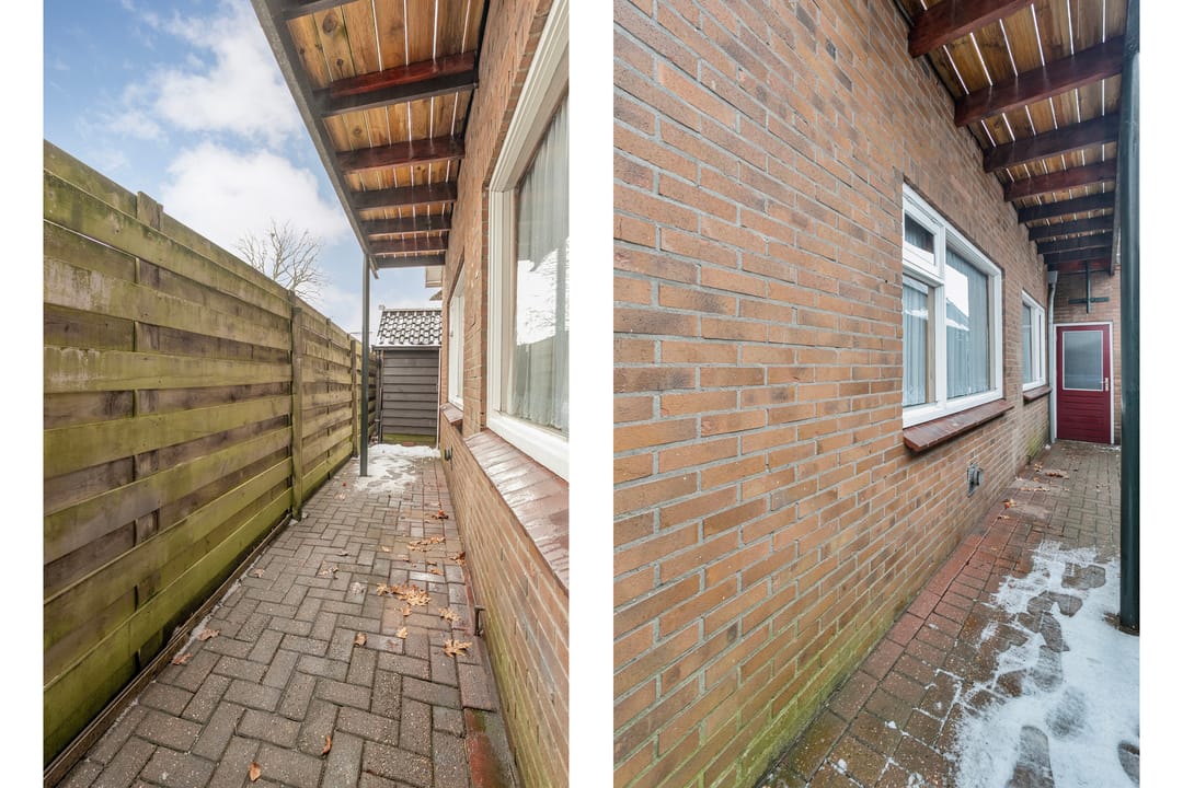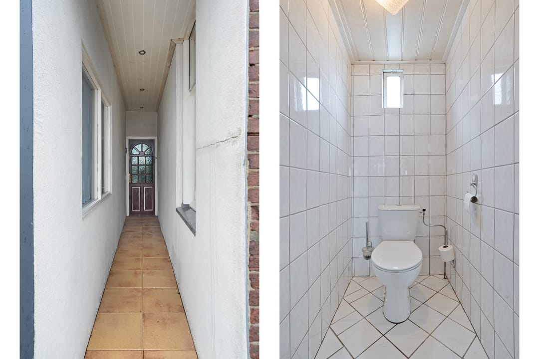 De bedrijfswoning, gebouwd in 1945, is bereikbaar via de werkplaats en betreft een woning die gemoderniseerd dient te worden, maar volop mogelijkheden biedt.