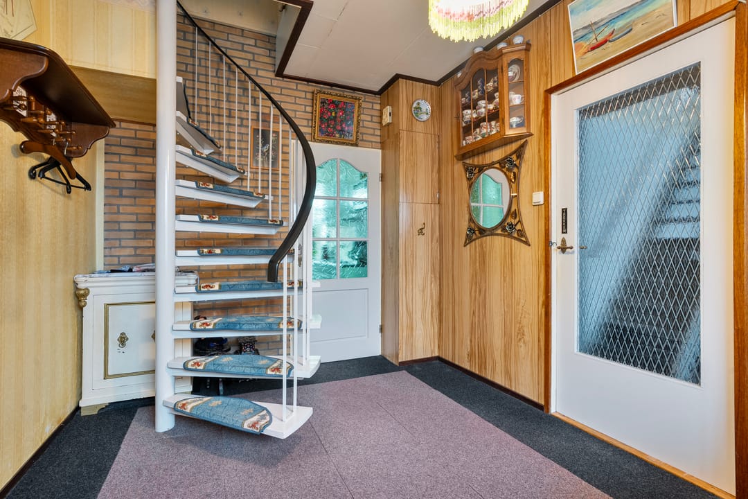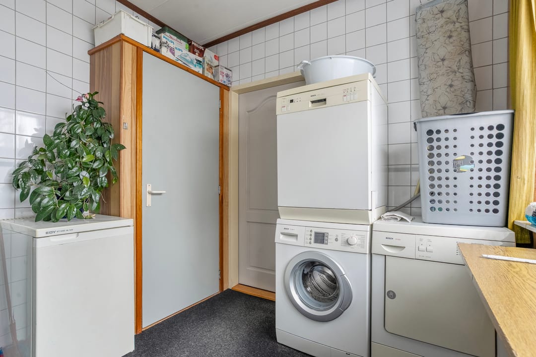 De woning heeft een eigen voordeur en via de werkplaats heeft u toegang tot de keuken en de woonkamer. Tevens bereikt u vanuit de hal de berging en de badkamer.