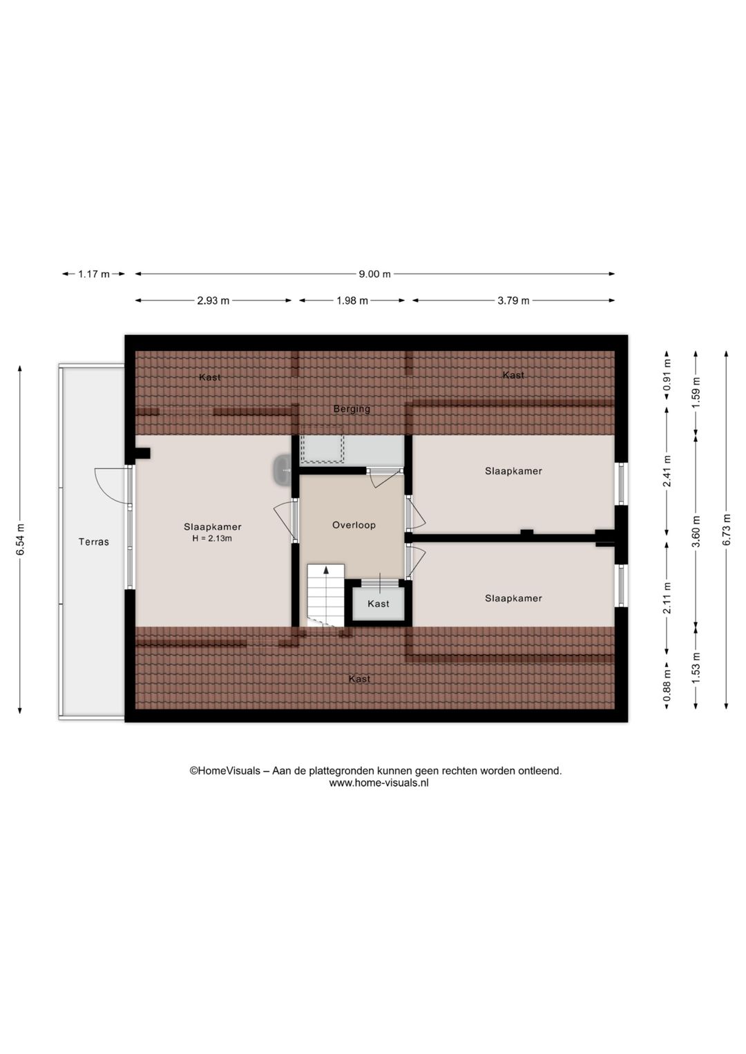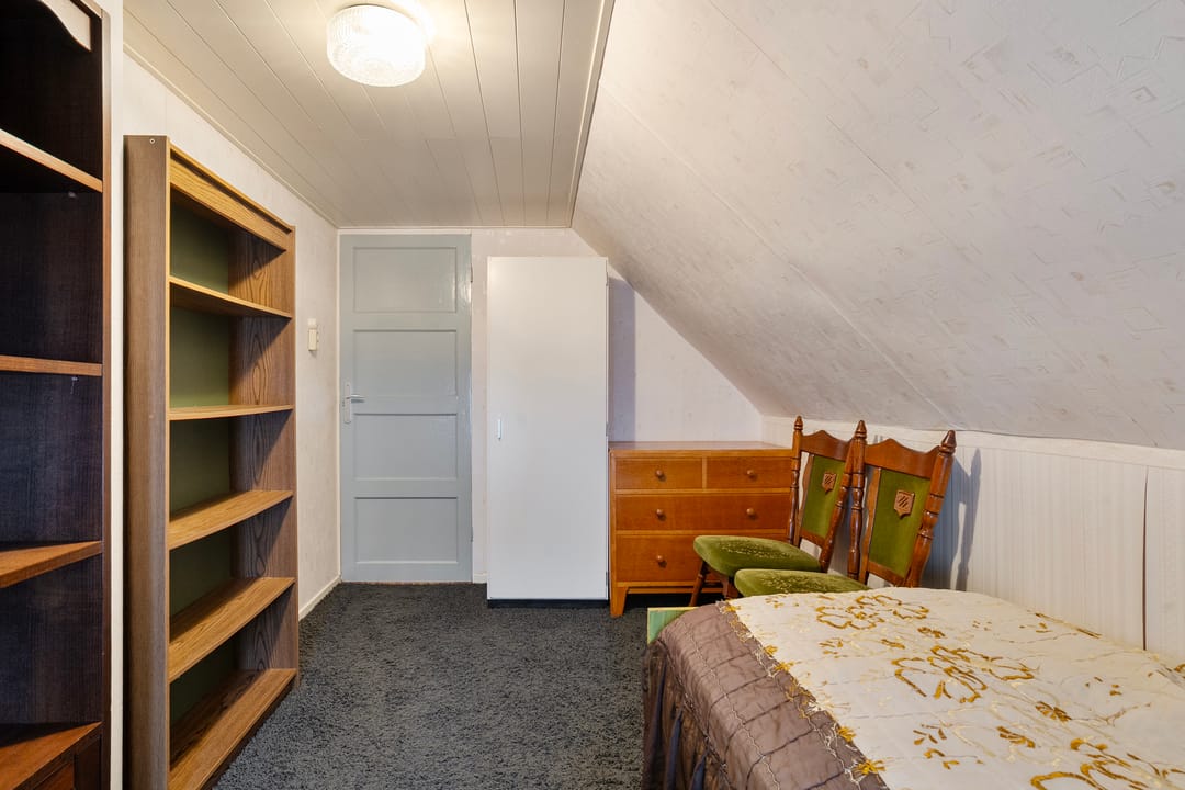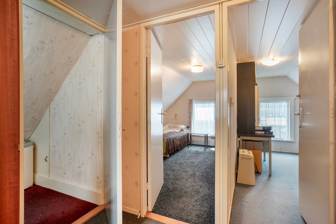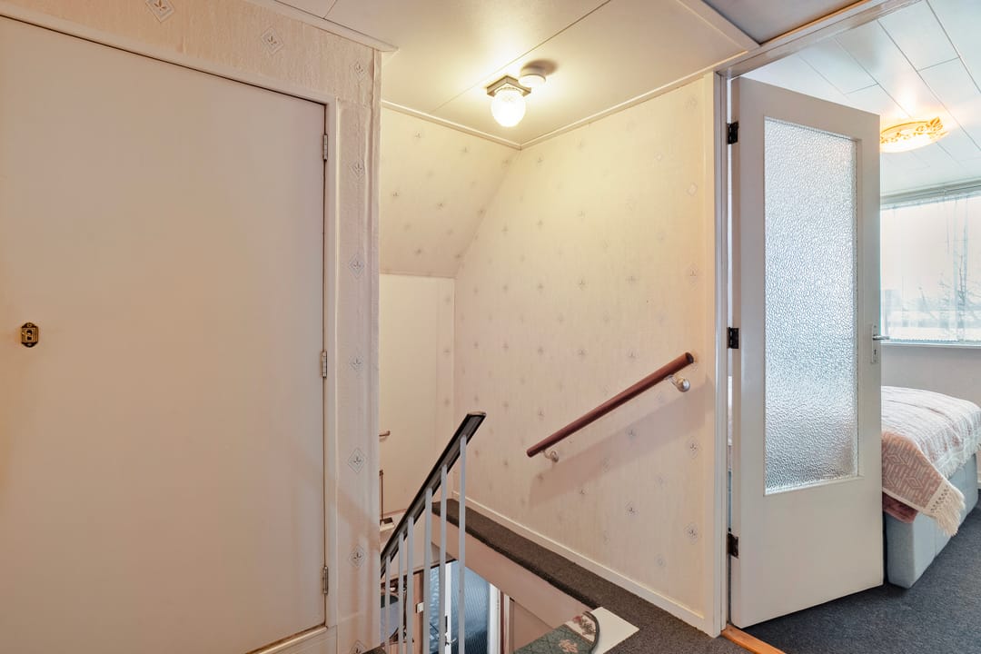 Op de verdieping bevindt zich een overloop met vaste kast, een bergruimte en drie slaapkamers.