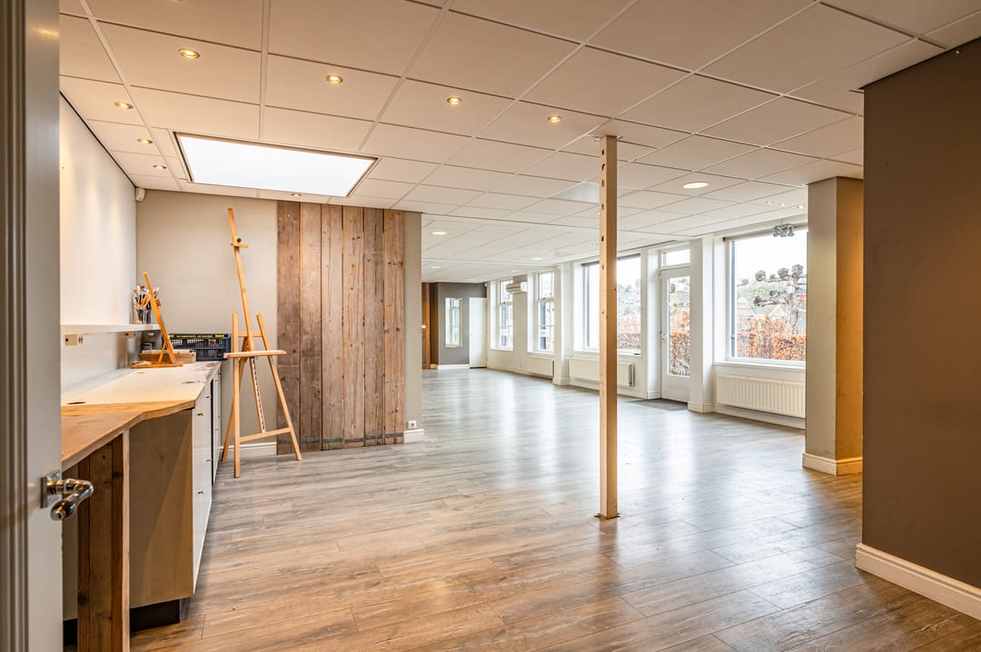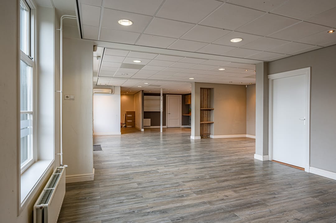 Het geheel is circa 92m² groot en voorzien van een pantry. De ruimte is eventueel eenvoudig op te delen in meerdere ruimtes maar kan ook als één geheel worden ingericht.