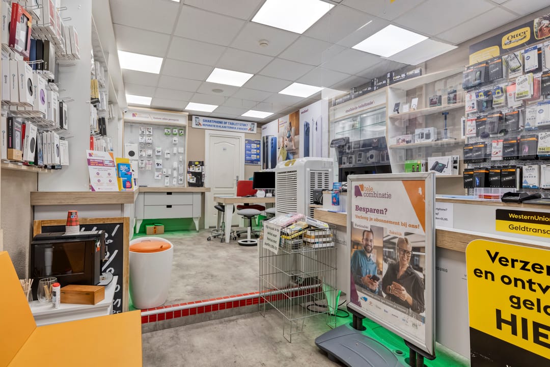 De winkelruimte is voorzien van een systeemplafond met verlichting, rolluiken, een uitstortgootsteen met koud wateraansluiting, een toilet en een wasmachineaansluiting. Daarnaast is er een gecertificeerd inbraak- en beveiligingssysteem aanwezig, alsmede een camerabewakingssysteem