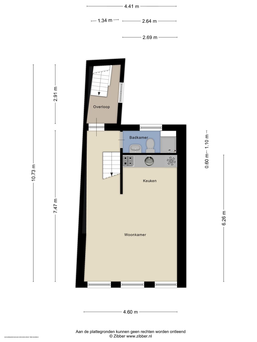 De winkelruimte omvat circa 45 m² vvo. en de bovenwoning circa 56 m² gbo.