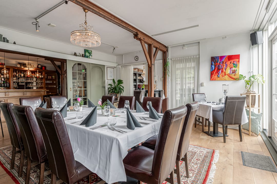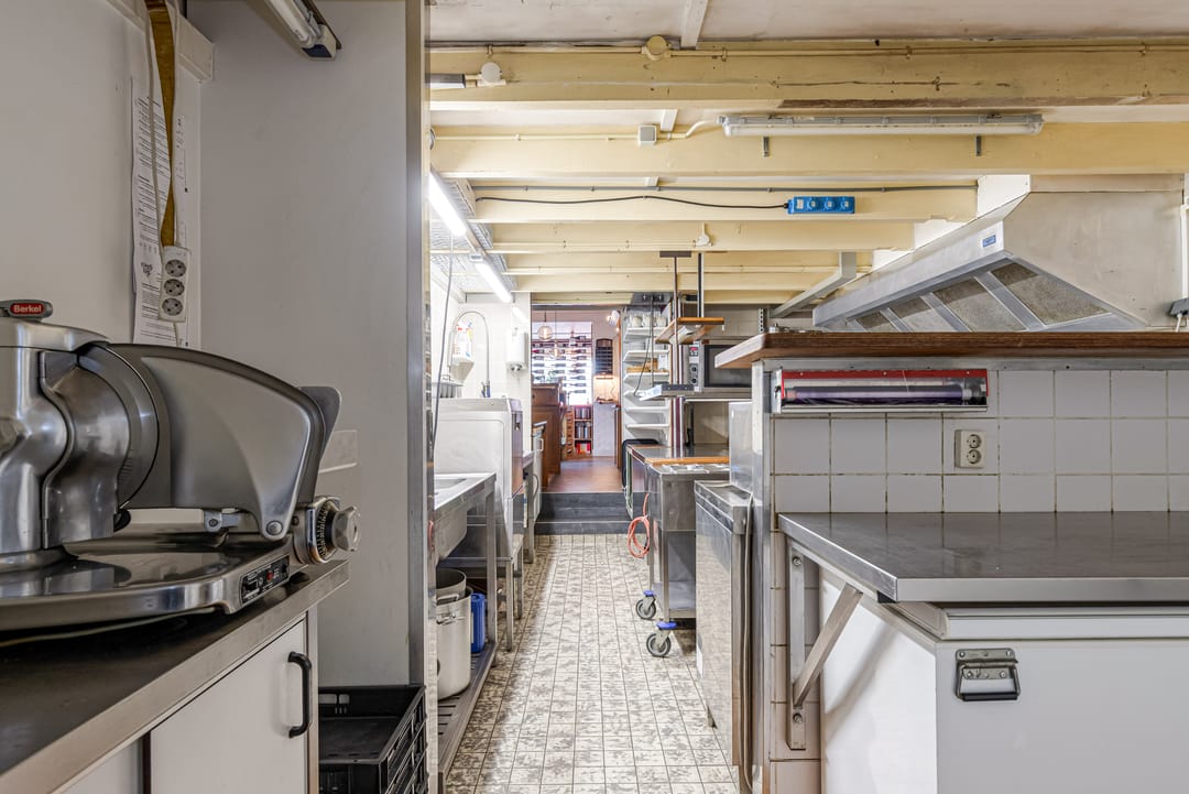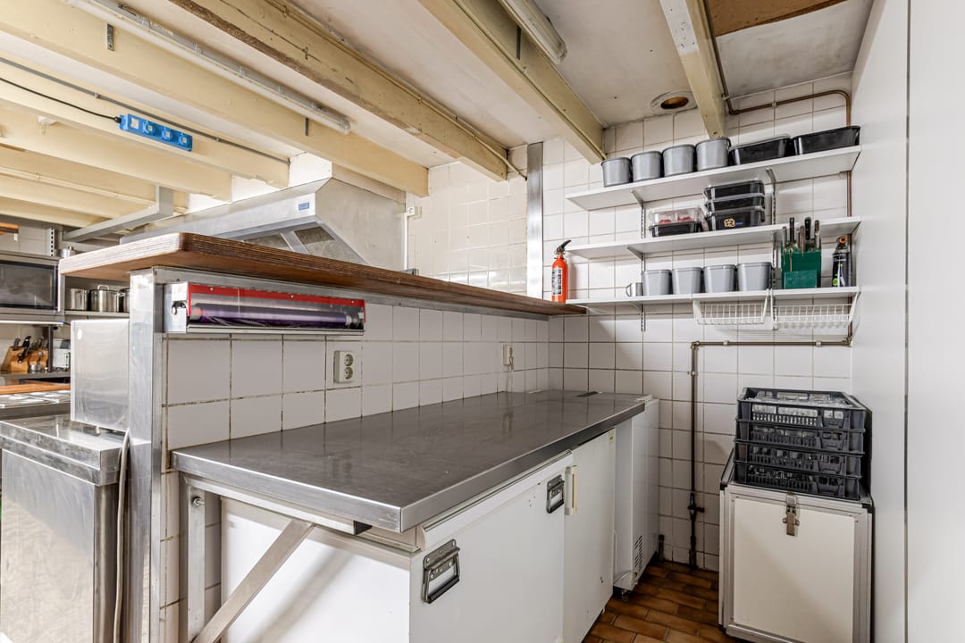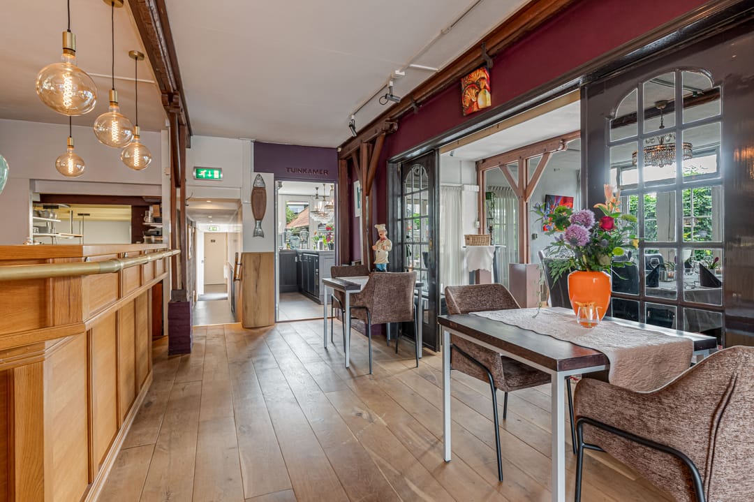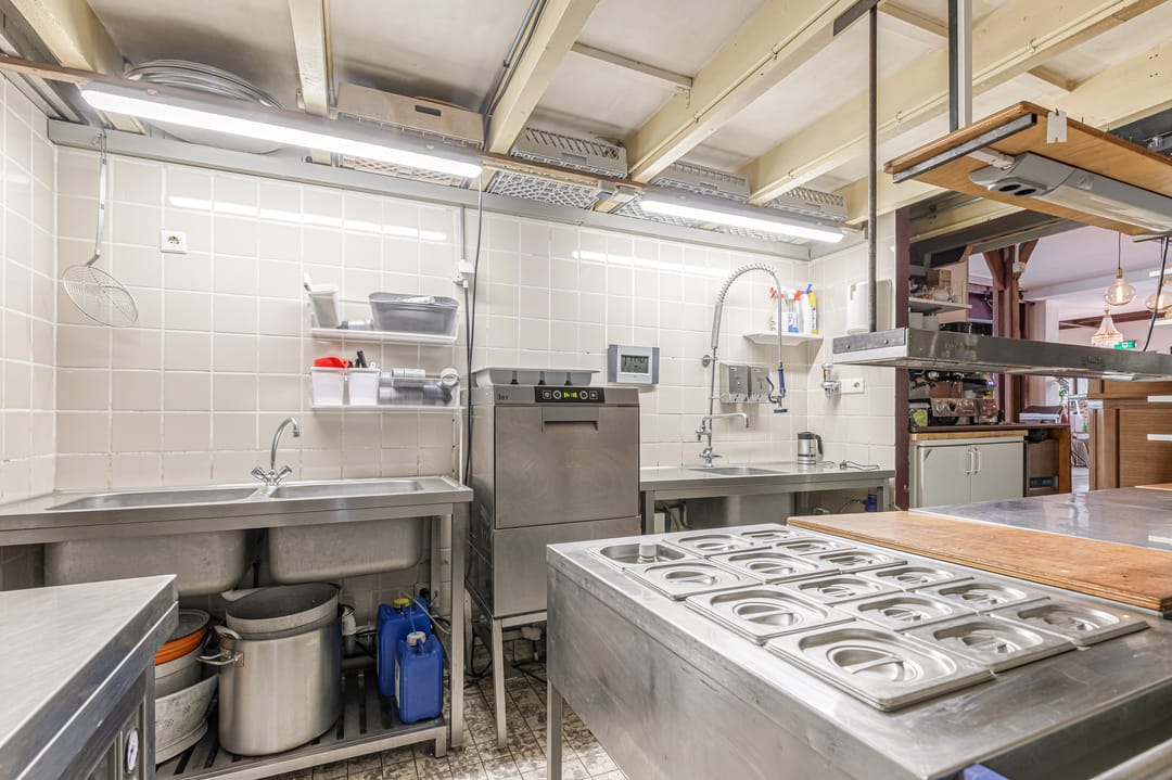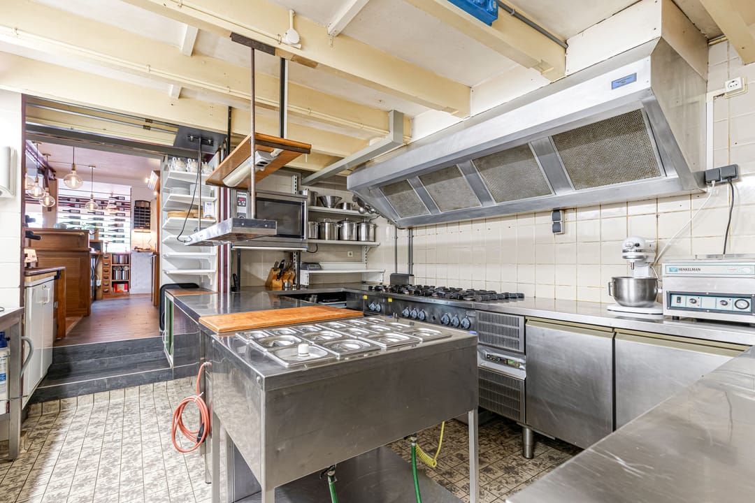 Het bedrijfsdeel bestaat uit meerdere commerciële ruimtes van verschillende afmetingen, momenteel ingericht als restaurant en bar, maar eenvoudig te transformeren naar andere gebruiksdoeleinden. De twee baropstellingen, centraal gesitueerde keuken, diverse opslagruimtes en de complete toiletgroep bieden mogelijkheden voor uiteenlopende bedrijfsactiviteiten. De ruime oppervlakten geven daarbij veel vrijheid in indeling en inrichting.