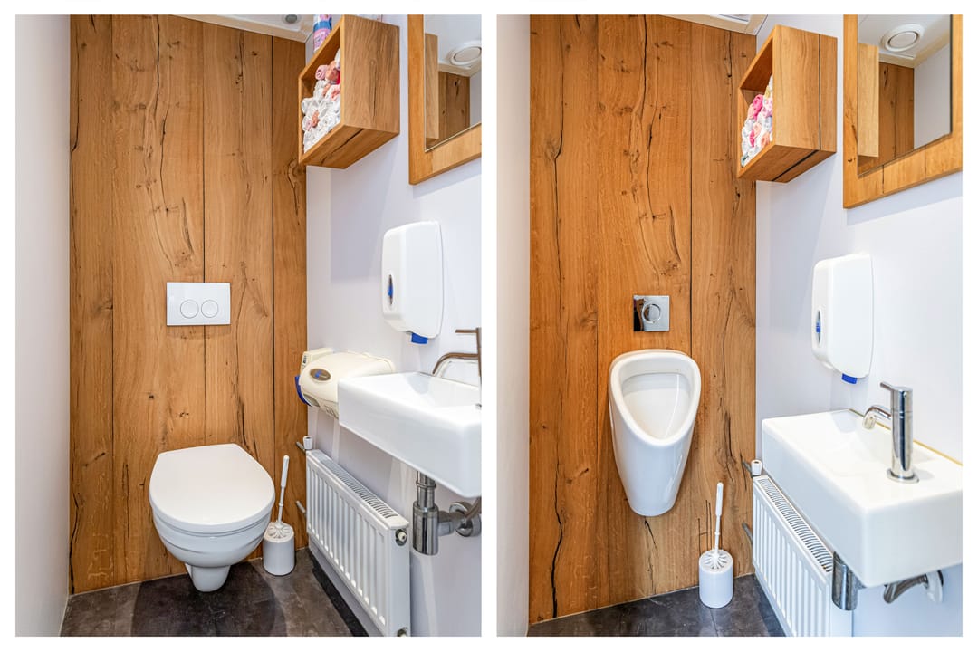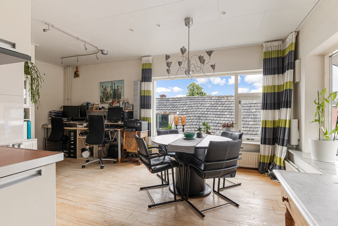 Boven het bedrijfsgedeelte bevindt zich een royale bovenwoning van 112 m², ideaal als dienstwoning of voor eigen gebruik. De woning beschikt over drie slaapkamers, een verzorgde badkamer, een balkon aan de voorzijde en een ruim dakterras aan de achterzijde.