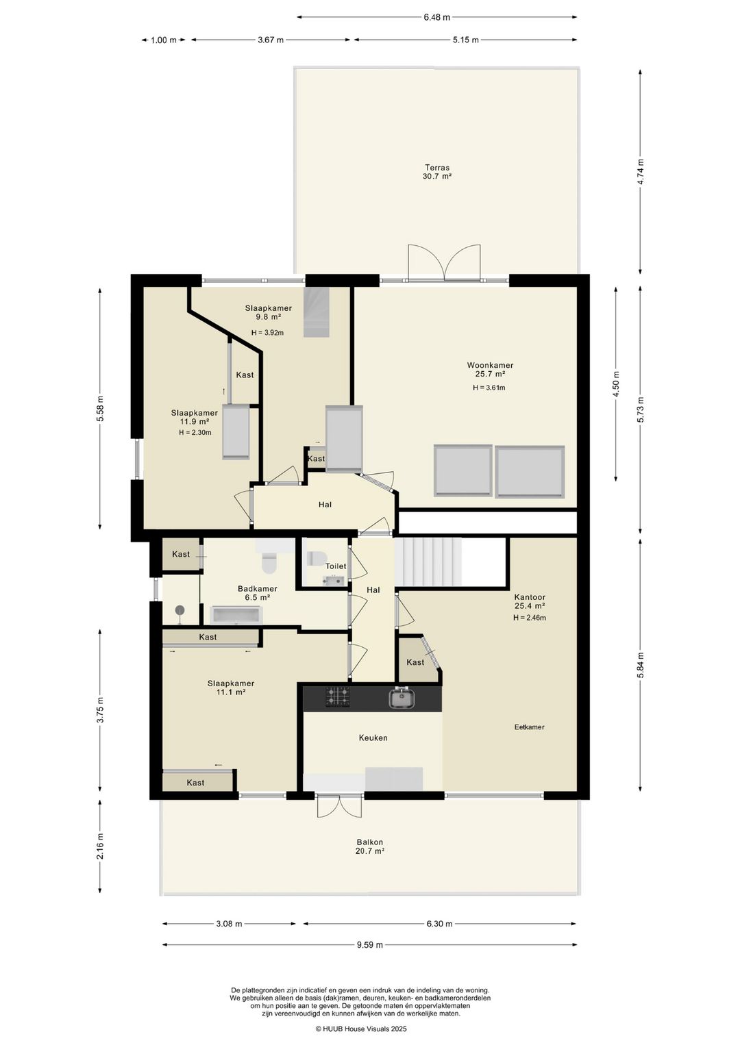 - Royale bovenwoning van 112 m² met balkon en dakterras;