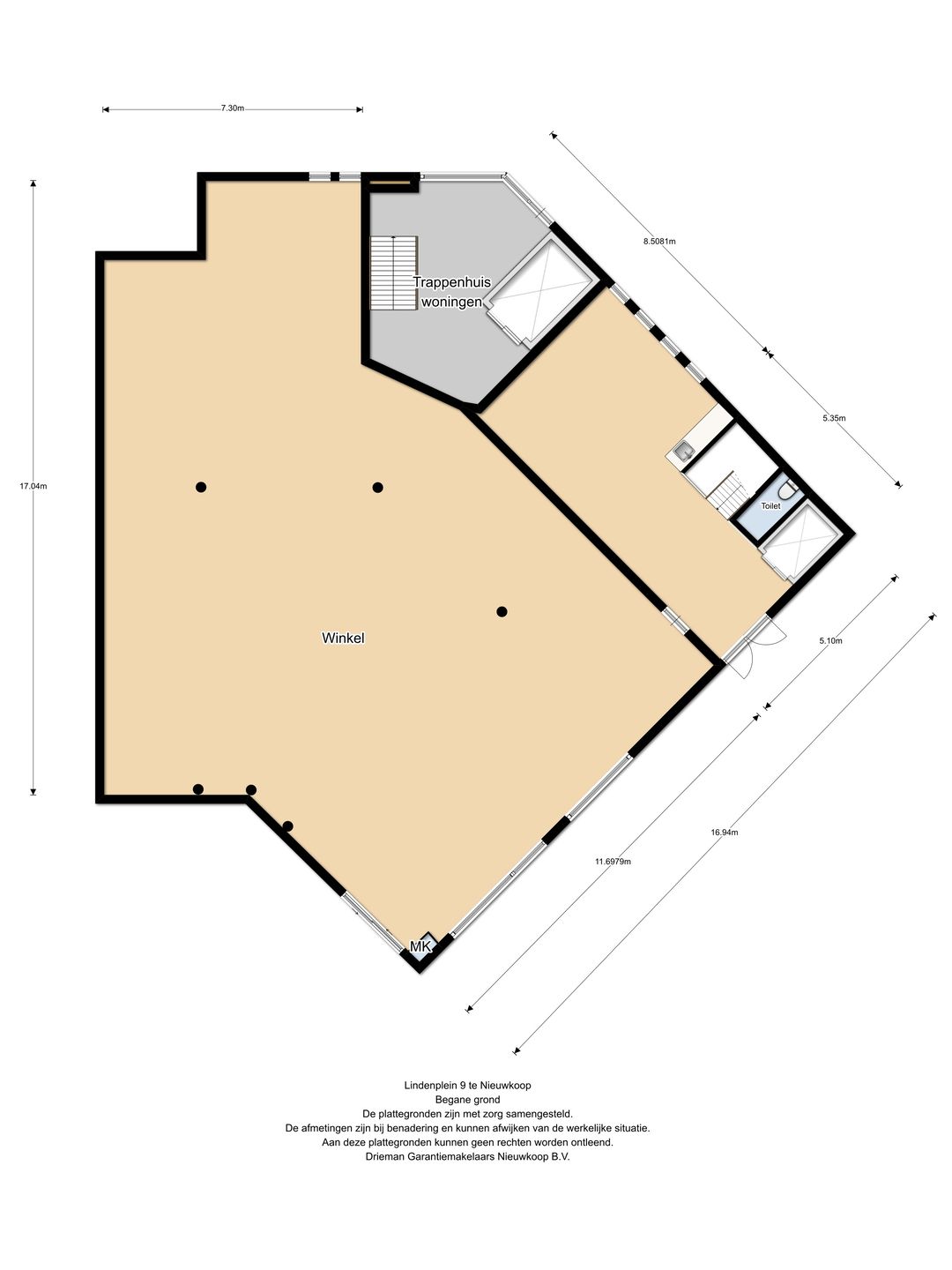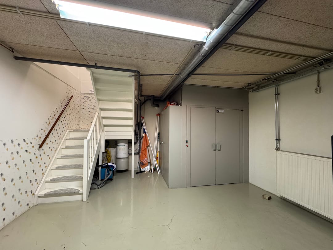 Op de begane grond een winkelruimte van 217 m2, een zijentree met een hal, toilet, goederen lift, kantoor en keukentje. Al met al ruim 260 m2 groot.