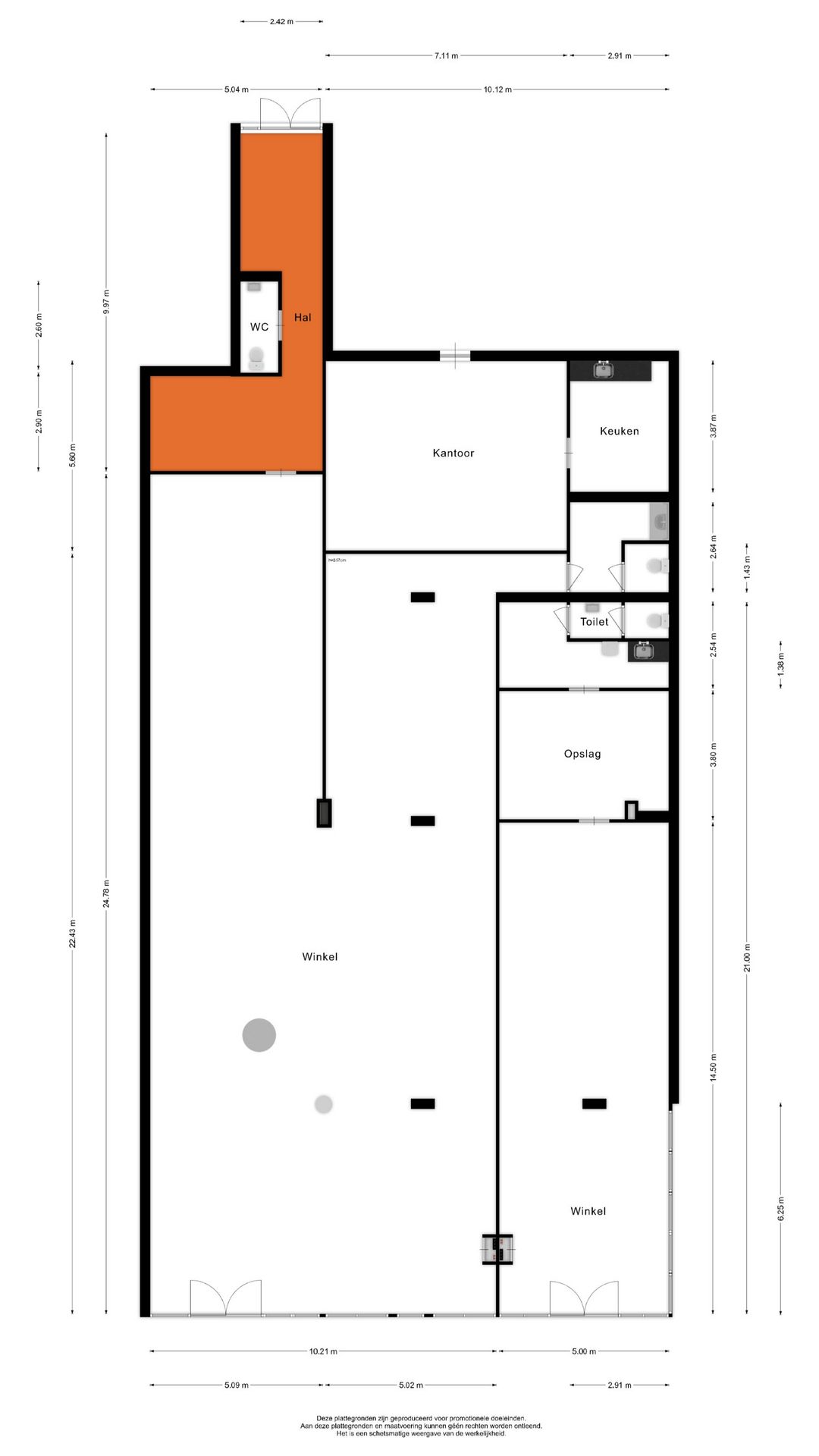 Door het enorme front van meer dan 15 meter heeft u alle mogelijkheden u winkel goed te presenteren.