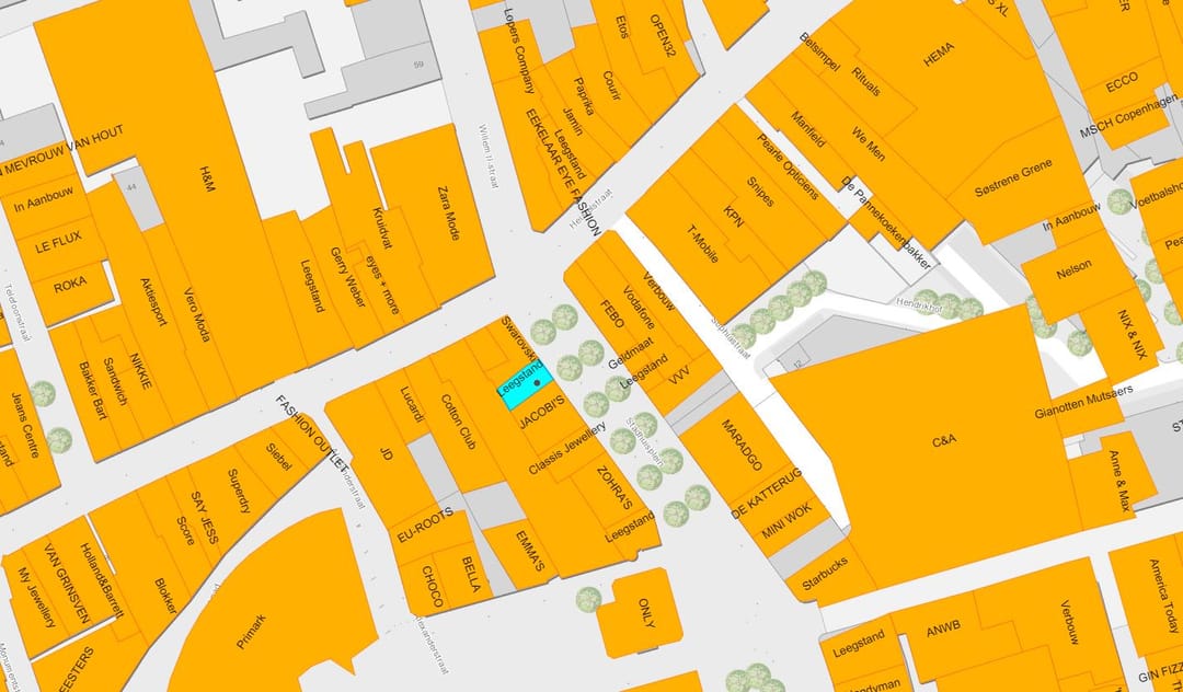 Het object is centraal gelegen in het kernwinkelgebied van Tilburg nabij het kruispunt met de Emmapassage. De winkelruimte ligt tussen diverse landelijke ketens wat bijdraagt aan een gunstig vestigingsklimaat voor ondernemers. In de directe omgeving zijn formules gevestigd zoals Primark, H&M, Van Uffelen Mode, FEBO en diverse lokale ondernemers.