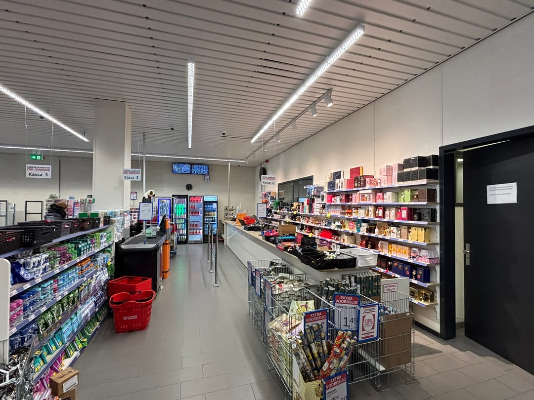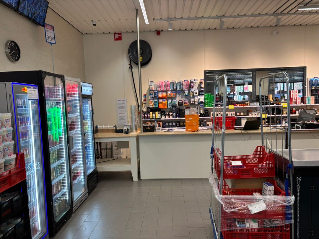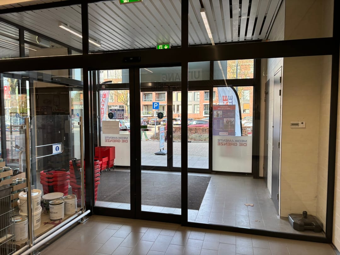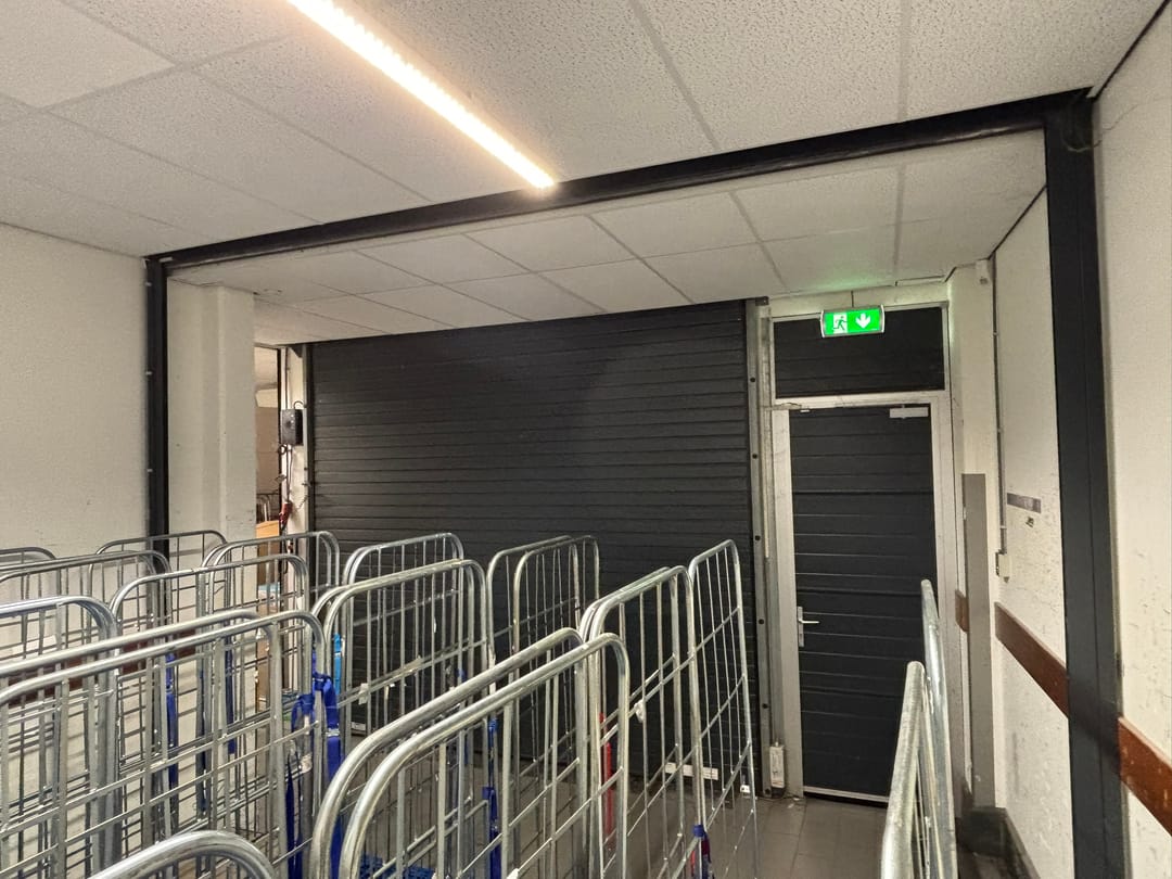 - roldeur tussen winkel en magazijn