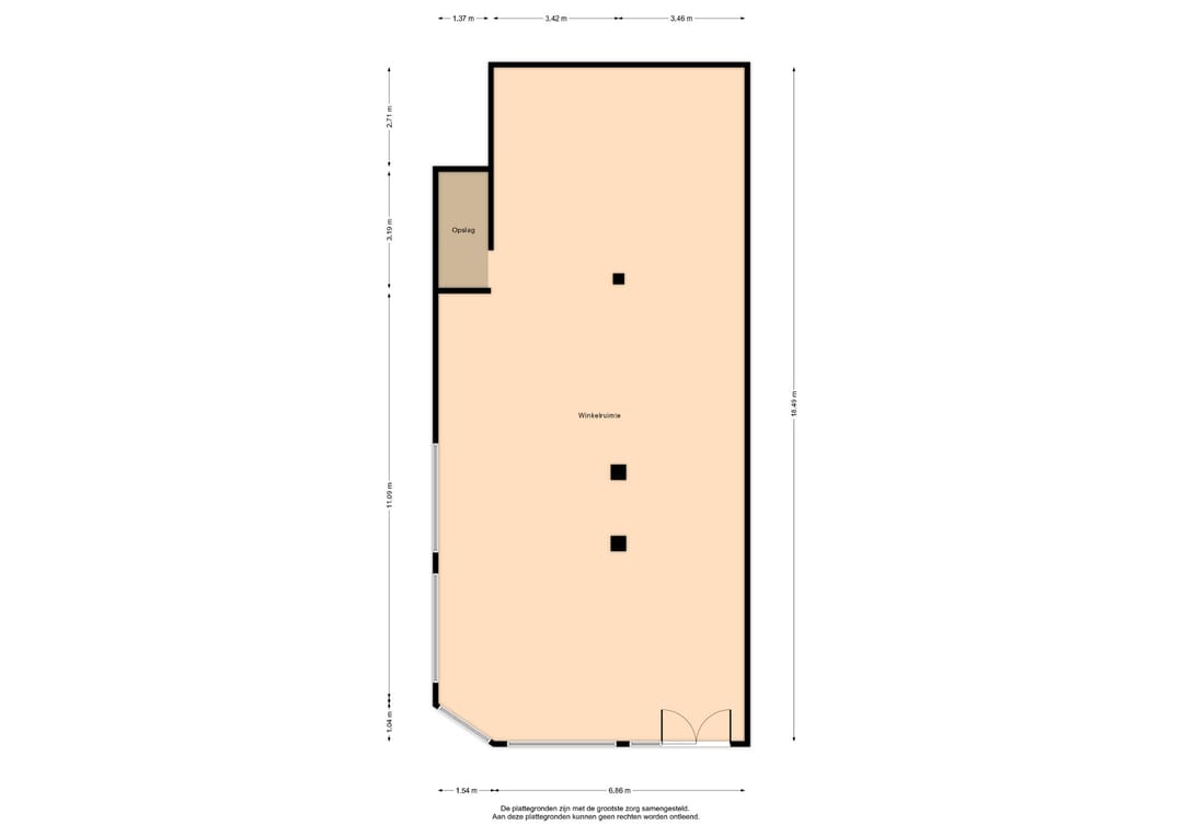 De totale oppervlakte van de winkelruimte bedraagt ca. 151 m2.