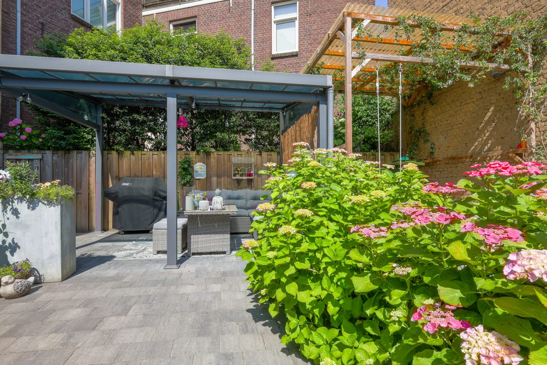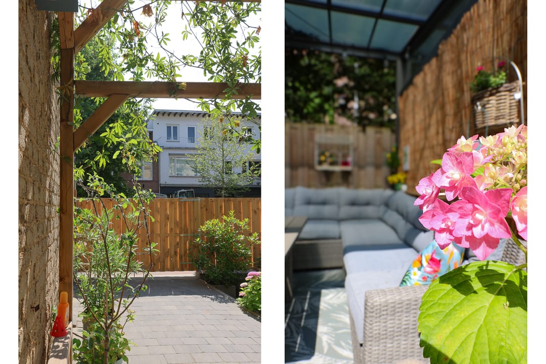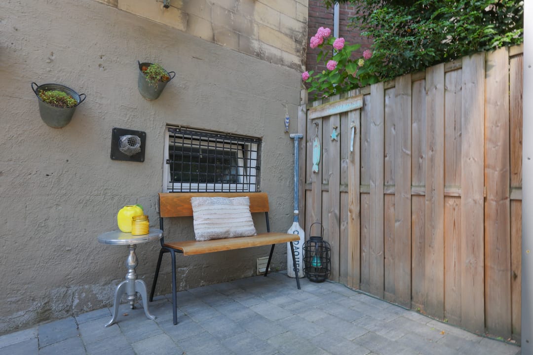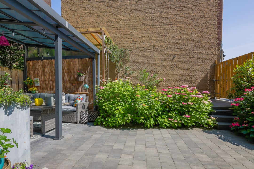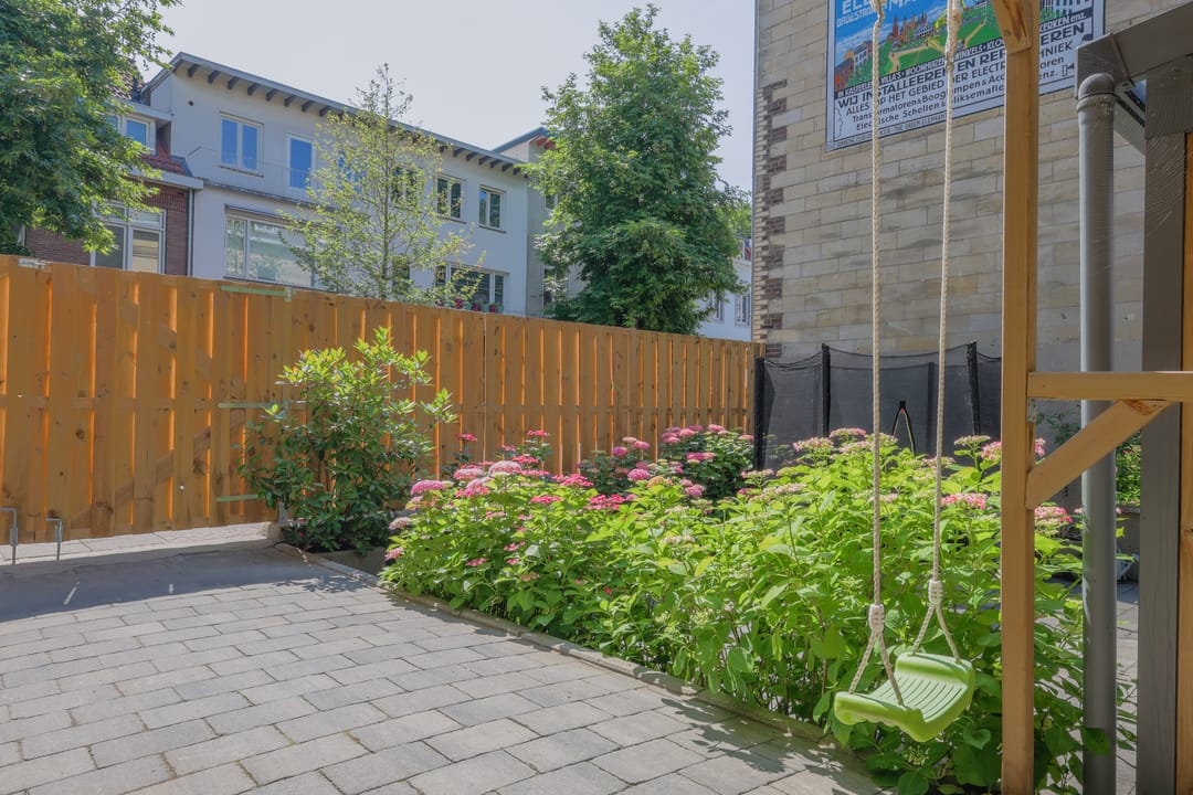 naast de woning gelegen stadstuin welke onderhoudsvriendelijk is afgewerkt en deels is ingericht als privé-parkeerplaats.