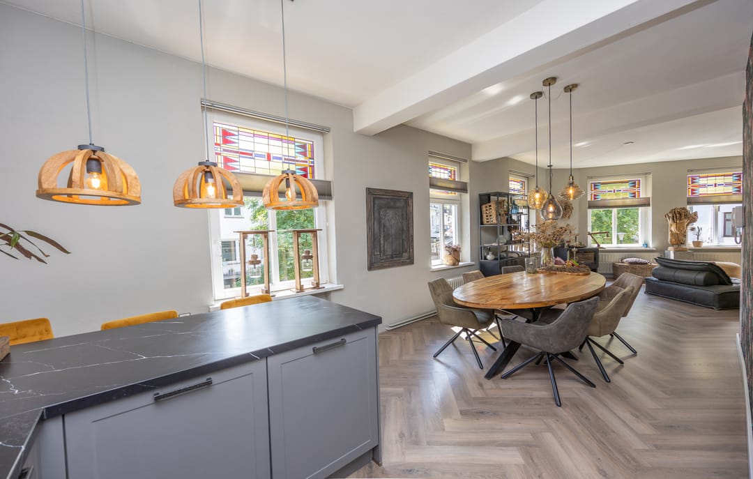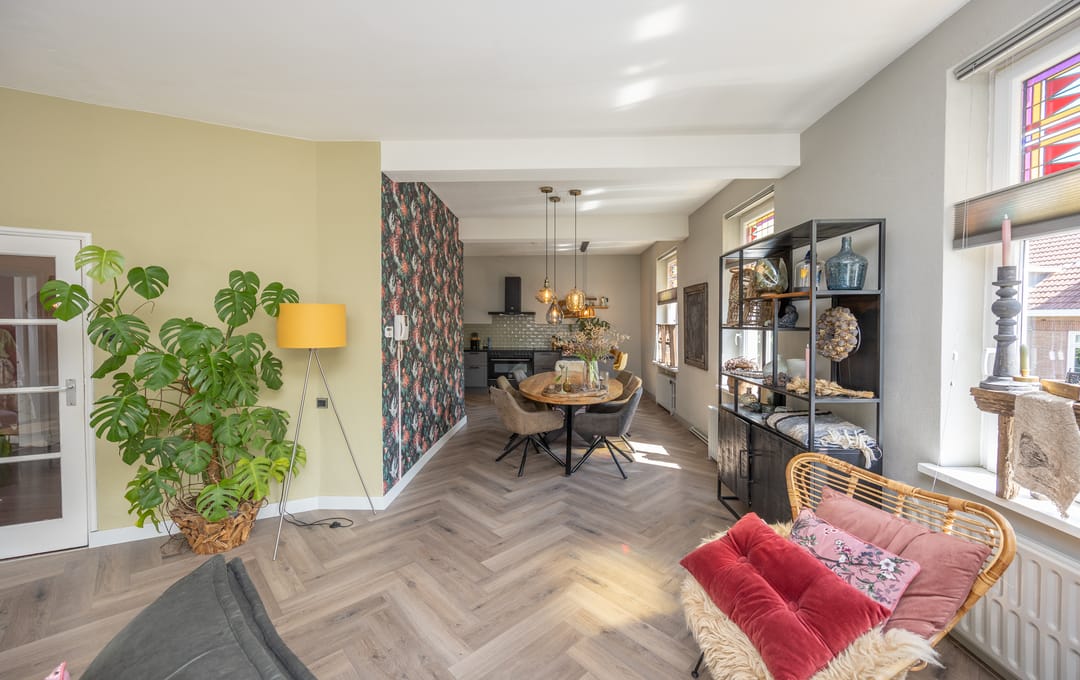 Vanuit de woonkamer/eetkamer heeft met het perfecte zicht op het voorgelegen straatbeeld. Door de open indeling is de inrichting van de woonkamer op diverse manieren te bewerkstelligen.