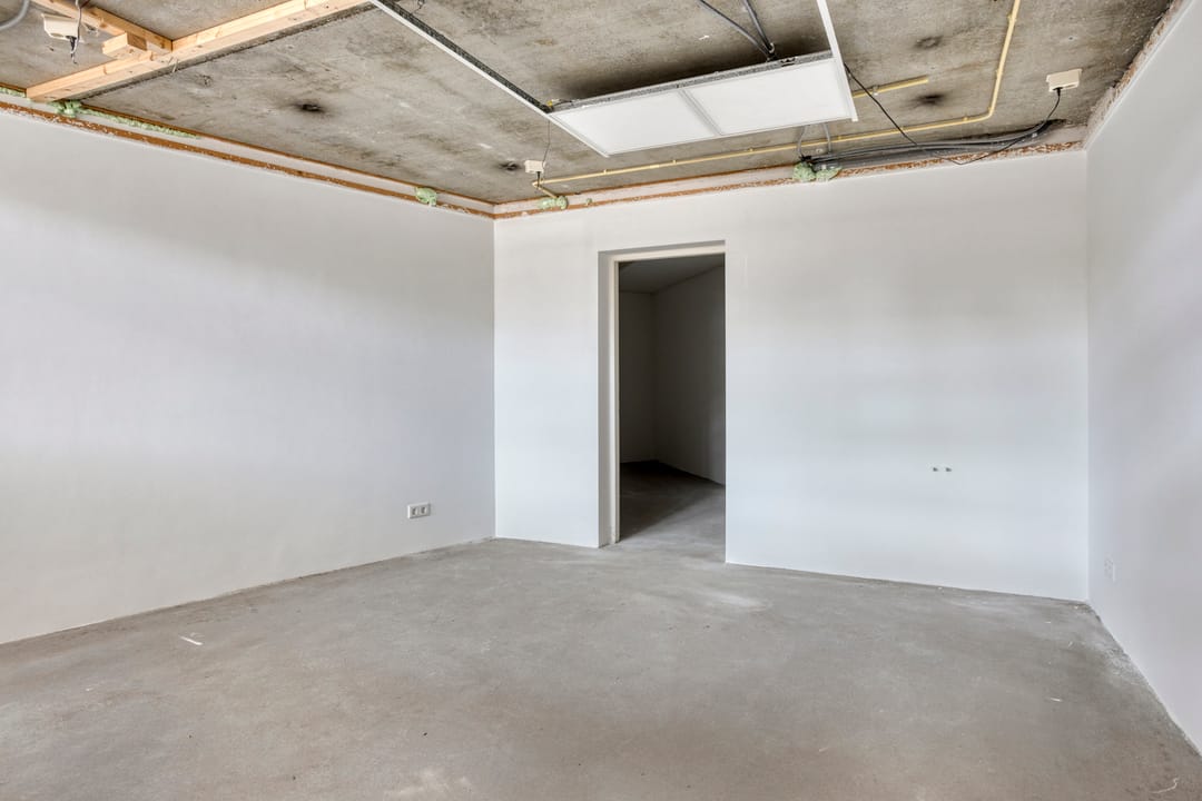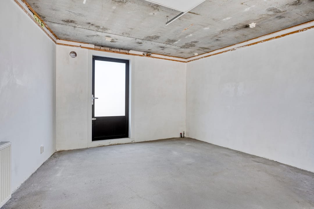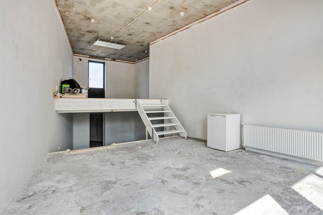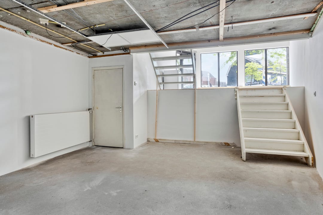 Middels een brede trappartij toegang tot het hoger gelegen niveau. Deze verdieping beschikt over een nog te realiseren toiletruimte en achterin een nooduitgang.