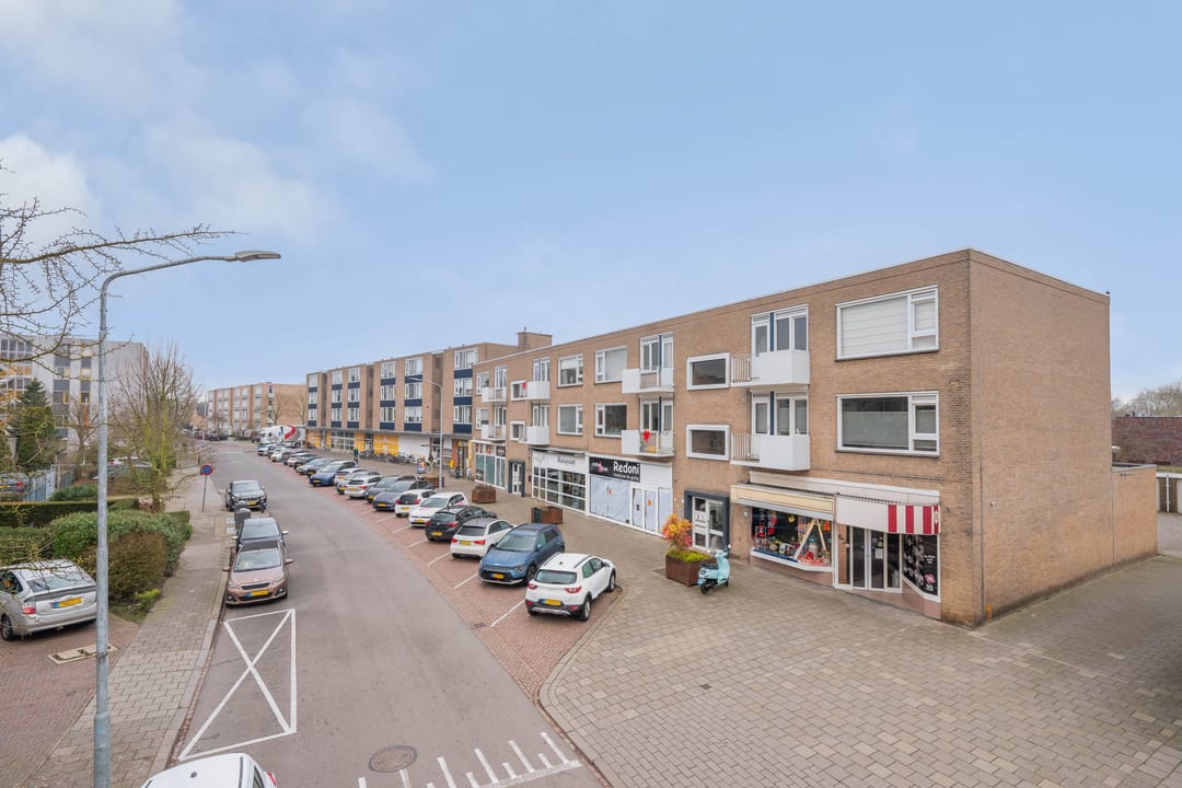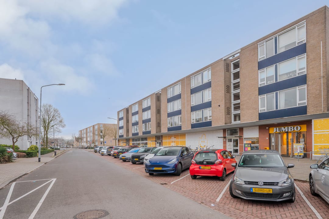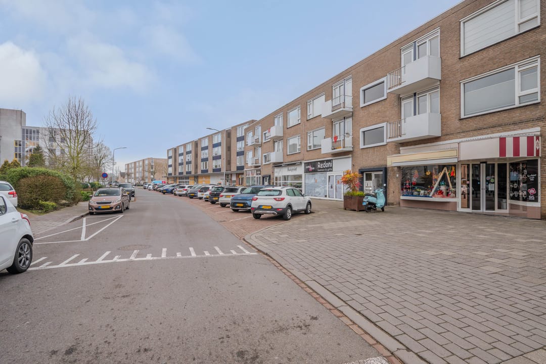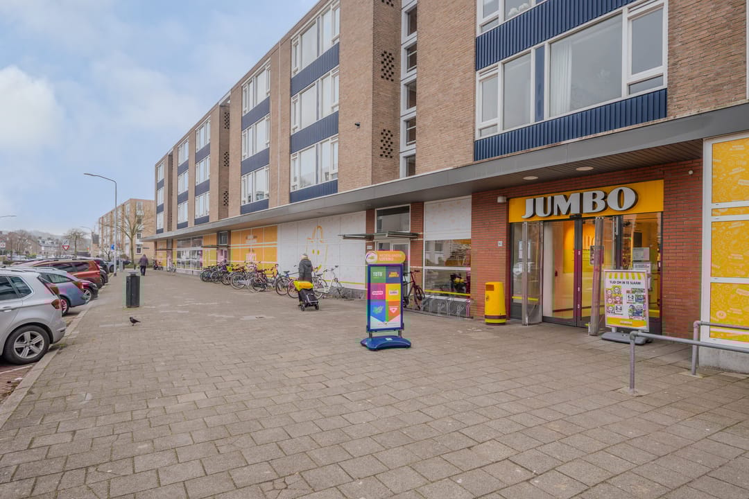 De winkelruimte ligt in de winkelplint waarin zich ook een drukbezochte Jumbo supermarkt bevindt. Verder zijn hier nog de volgende winkels gevestigd: een kapperszaak, een polier en een bloemenwinkel.