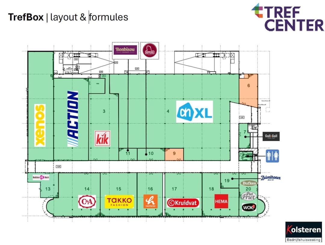 De Trefbox (gebouw 6) is centraal gelegen op het Trefcenter en heeft van oudsher een invulling die gekenmerkt wordt door winkels voor dagelijkse voorzieningen. Na renovatie beschikt de Trefbox over 3 hoofdentrees die verbonden zijn door een nieuwe centrale passage waarin winkelunits van verschillende grootte gelegen zijn. Aan weerszijden van de Trefbox zijn grote parkeerterreinen gesitueerd die direct ontsloten zijn op de Nijmeegseweg.