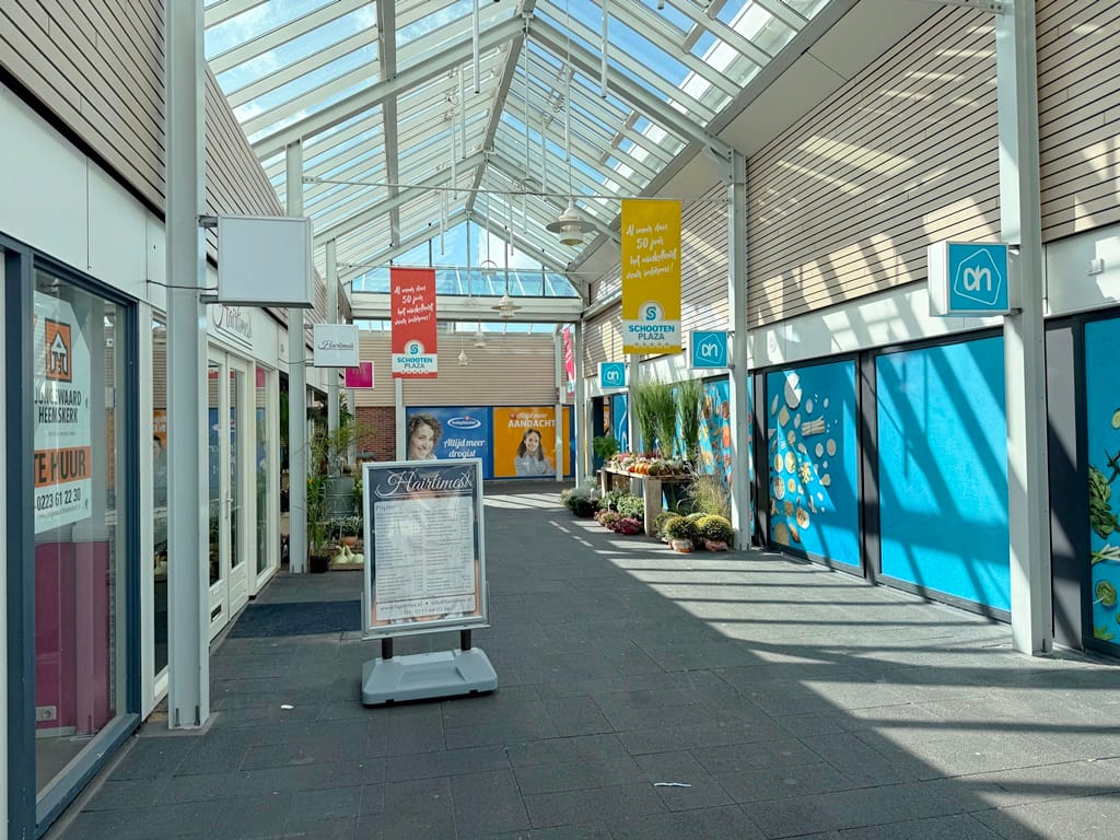 Winkelruimte ca. 82m² groot in "Schooten Plaza" tegenover de Albert Heijn. Een kant en klare winkel voorzien van verwarming, systeemplafonds, led verlichting en vloerafwerking. De totale oppervlakte bedraagt ca. 82m² waarvan ca. 8m² in gebruik is als magazijn, toilet en pantry. De winkel is gelegen op een hoek van het winkelcentrum en kan via de zijkant ook bevoorraad worden.