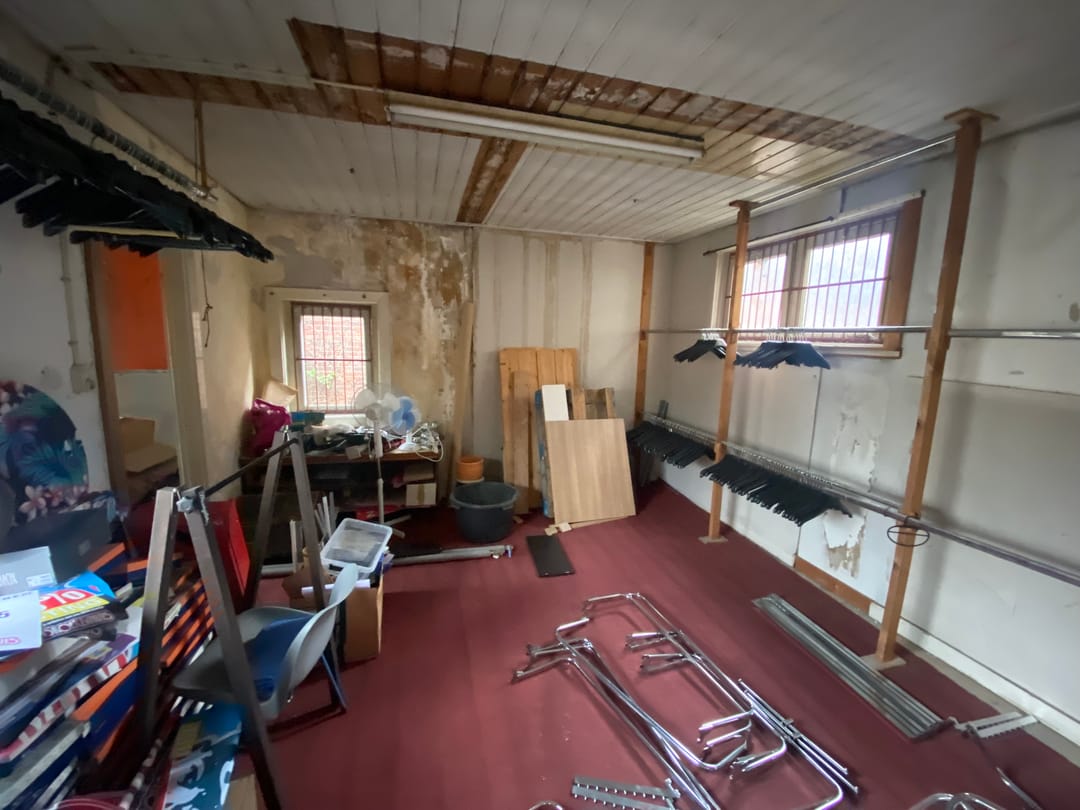 Begane grond: ca. 390 m² winkel met ca. 15 m² keuken, toilet en C.V.-ruimte. In de winkel is een opgang naar ca. 55 m² opslagruimte op de etage (eventueel om te bouwen naar woonruimte).