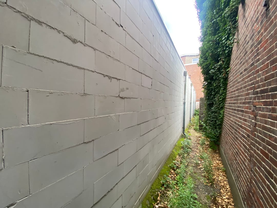 De 2 woningen op de etages zijn bereikbaar via de poort aan de rechterzijgevel met stalen trap naar de verdiepingen.