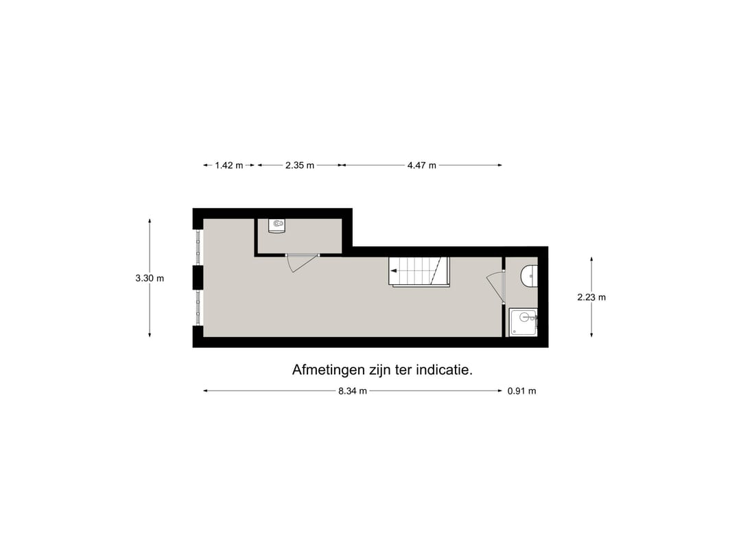De onzelfstandige bovenwoning heeft in totaal een oppervlakte van ca. 50 m² en is gelegen op de eerste- en tweede verdieping.