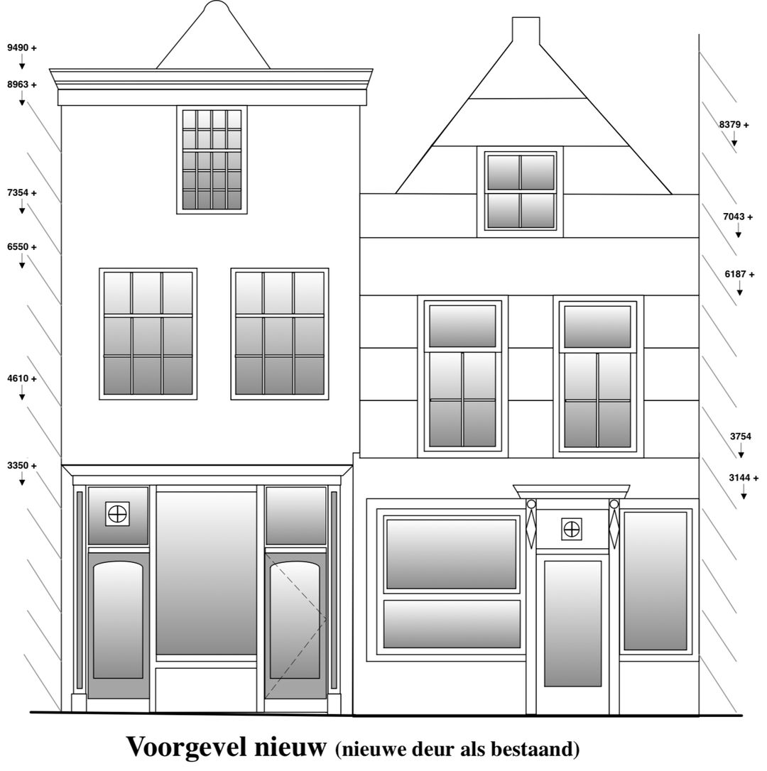 Kenmerk: Huis met geverfde lijstgevel. Winkelpui. XVII-XVIII