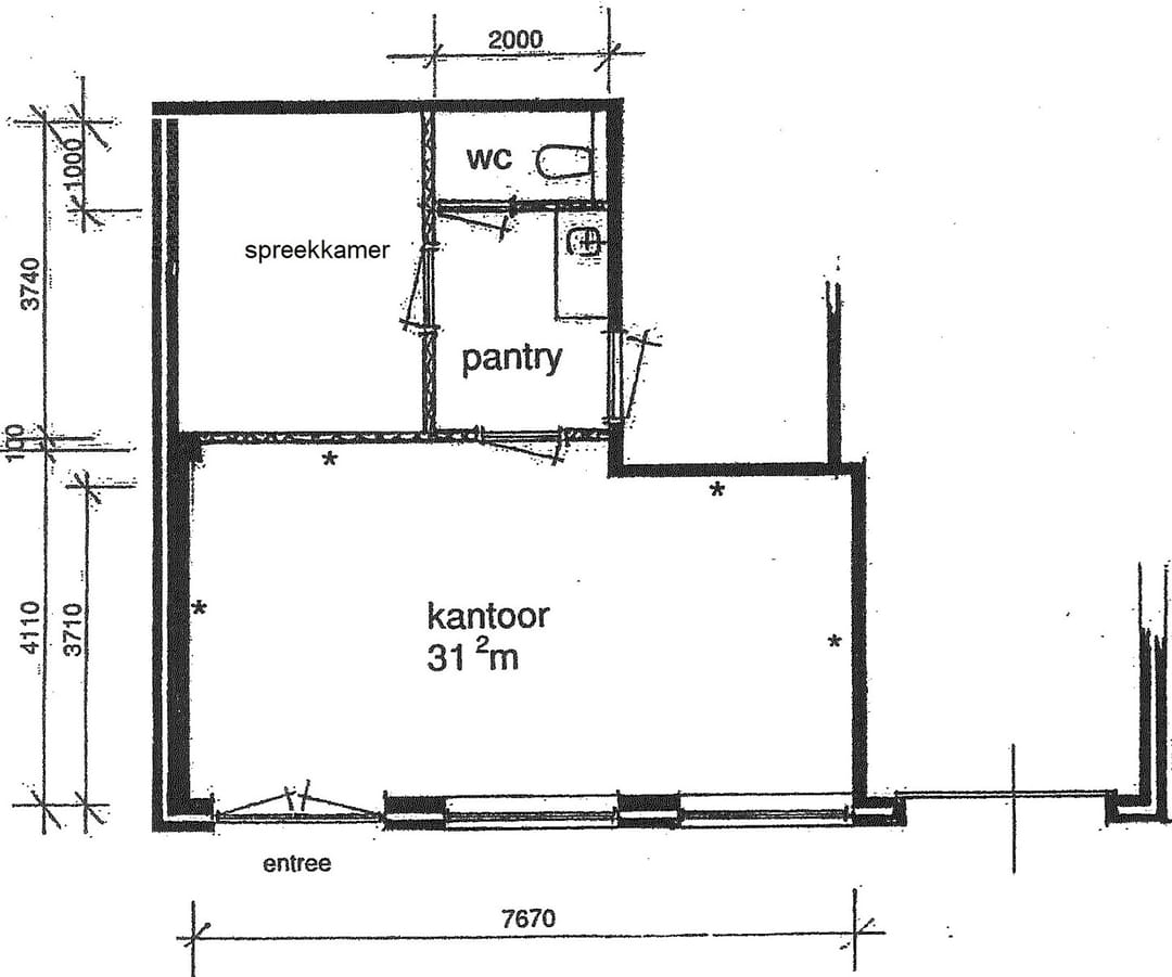 De kantoor-winkelruimte (ca. 31m2) is instapklaar met aansluitend een pantry met kitchenette en toilet.
