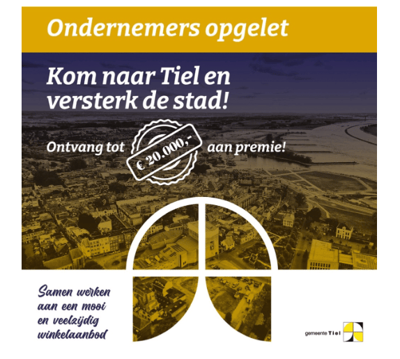LET OP: Wist u dat er een premie tot wel € 20.000,- beschikbaar is vanuit de gemeente Tiel om uw bedrijf in Tiel te vestigen? Deze aantrekkelijke subsidie maakt het nog interessanter om voor Tiel te kiezen als uw (nieuwe) vestigingsplaats. Meer informatie over deze regeling vindt u op onze website onder nieuwsberichten (1 juli 2024). En neem gerust contact op met ons kantoor om te ontdekken wat de mogelijkheden zijn en hoe wij u kunnen ondersteunen bij uw verhuizing naar of binnen Tiel.