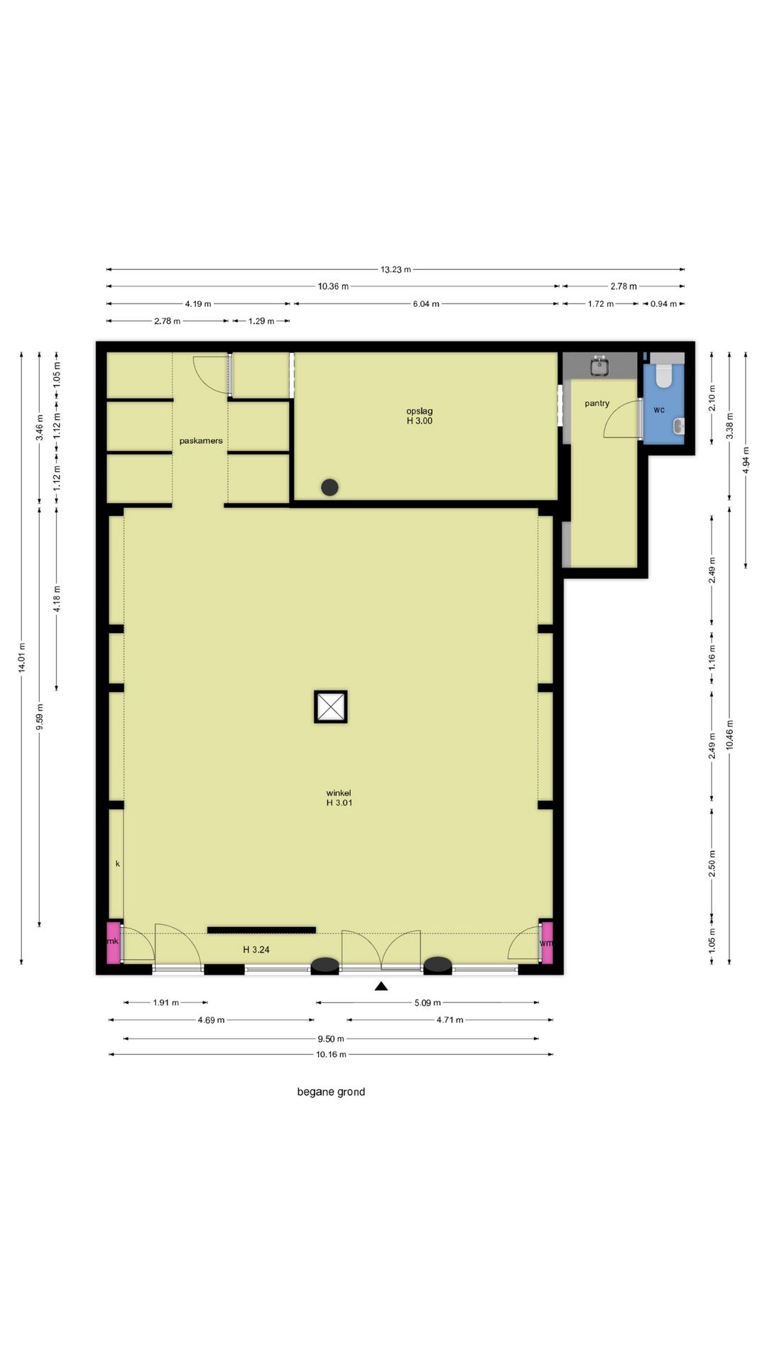 Het pand heeft een volledig glazen pui met een frontbreedte van ruim 10 meter wat zeer veel mogelijkheden biedt voor een ondernemer qua presentatie van zijn/haar onderneming.