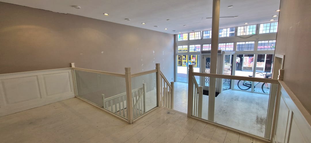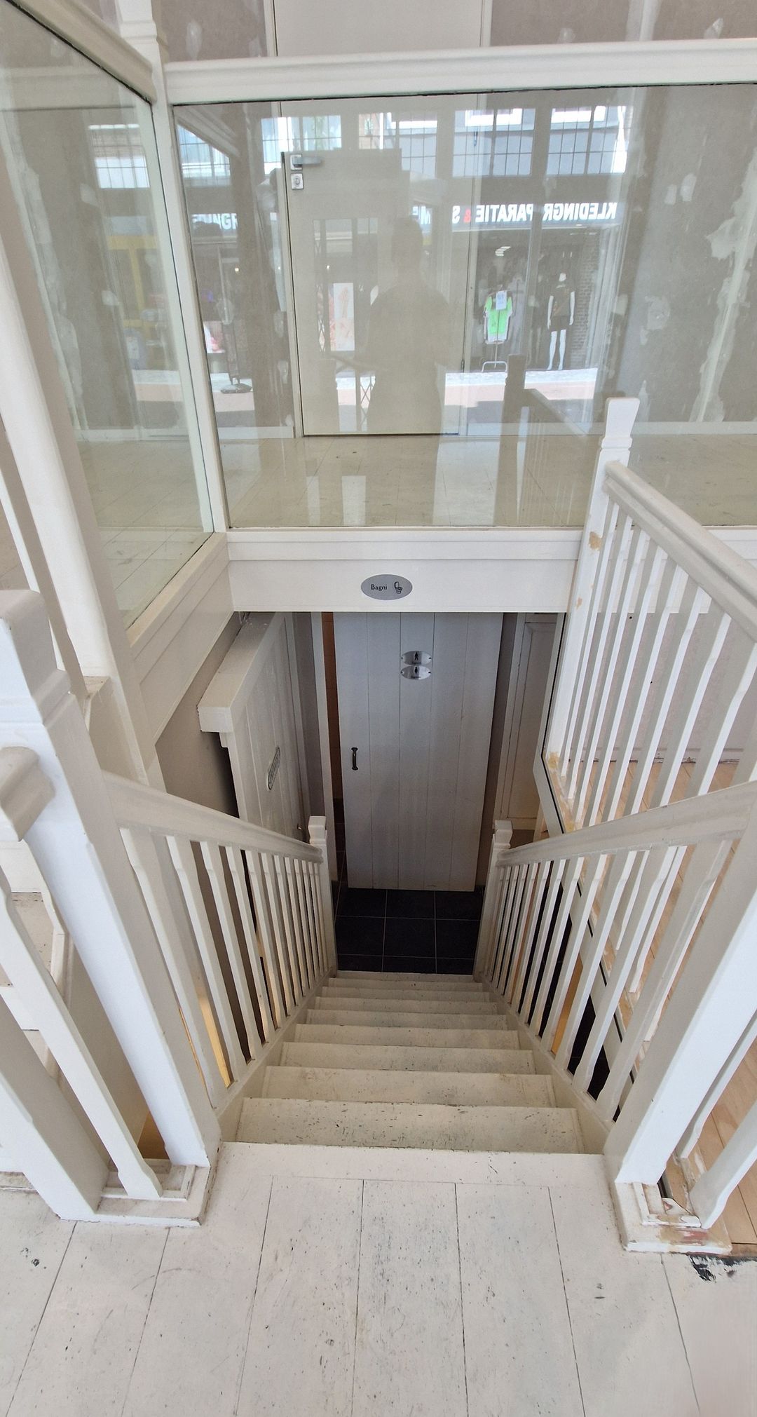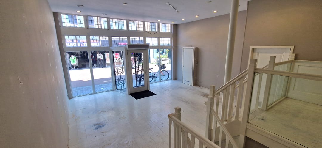 In het achtergedeelte van de winkel bevindt zich een verhoogde vloer v.v. glazen balustrade en afgescheiden, maar te verwijderen, bergruimte (hier kunnen eenvoudig bv. paskamers worden gemaakt). In de winkelruimte bevindt zich tevens een opbergkast v.v. wasbak. In het souterrain onder het winkelgedeelte zijn een toilet met voorportaal en een pantry v.v. close-in boiler gesitueerd. De winkel heeft een plafondhoogte variërend tussen ca. 2,1 m en ca. 3,4 meter. Het souterrain ca. 2,4 meter en de kelder ca. 1,6- 1,75 m. De kelder is bij uitstek geschikt als opslag. In het voorste deel van de winkelruimte bevindt zich nog een opbergkast v.v. wasbak.