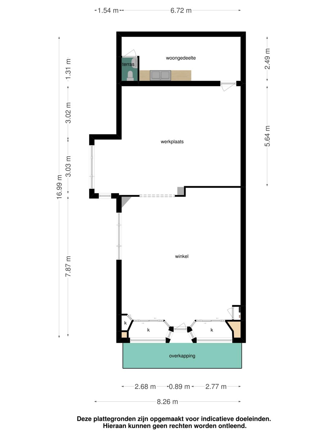 Begane grond: Open winkelruimte voorzien van vitrines en werkbanken. Aanwezig zijn een keukenblok, koel- en vriescel, alsmede een afgesloten toiletruimte.