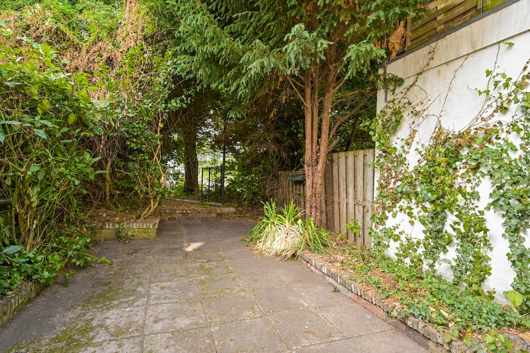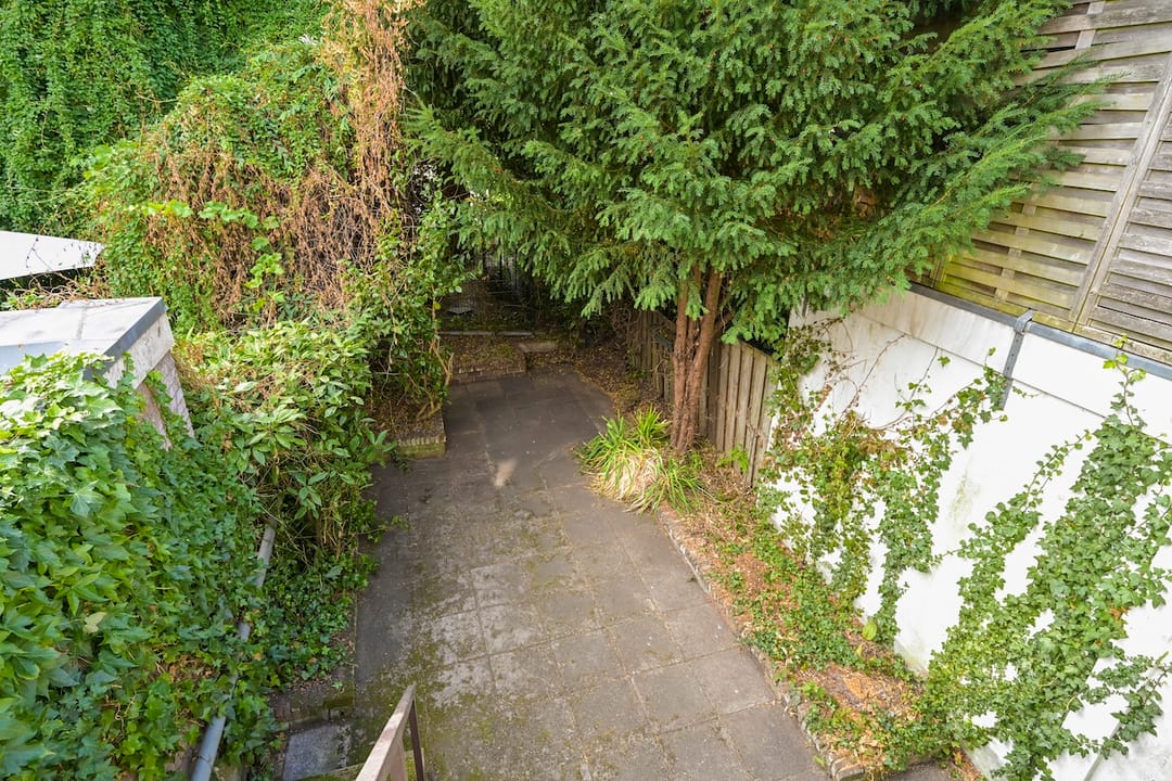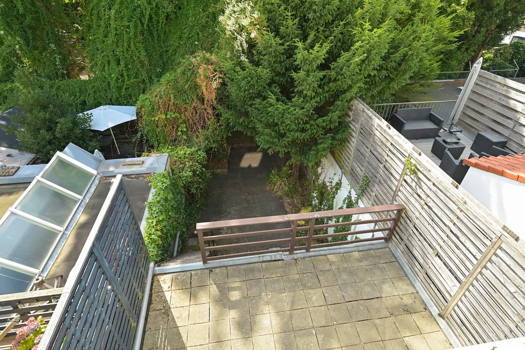Deze tuin is ook via een houten trap vanaf het terras op de eerste verdieping bereikbaar.